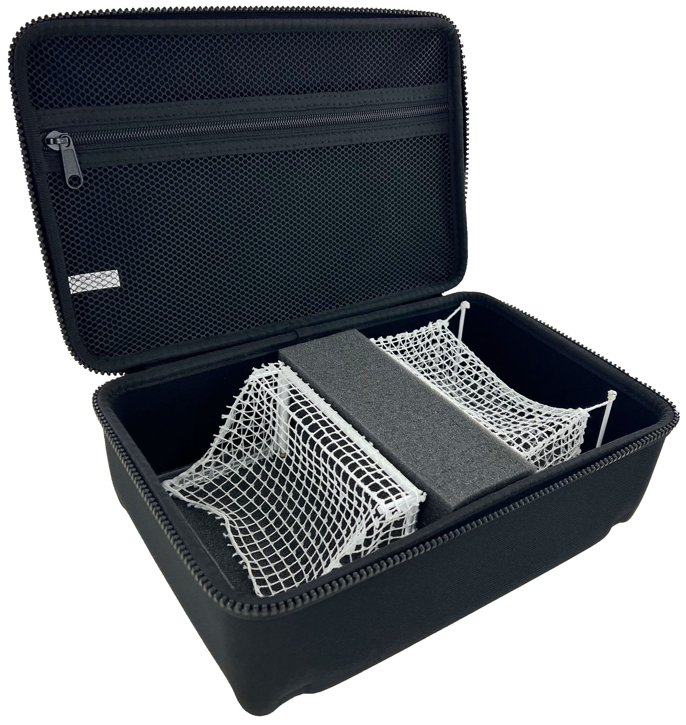 - Goals from the core game, as well as higher quality goals with a maximum width of 172 mm and maximum height of 70 mm, fit into the case.