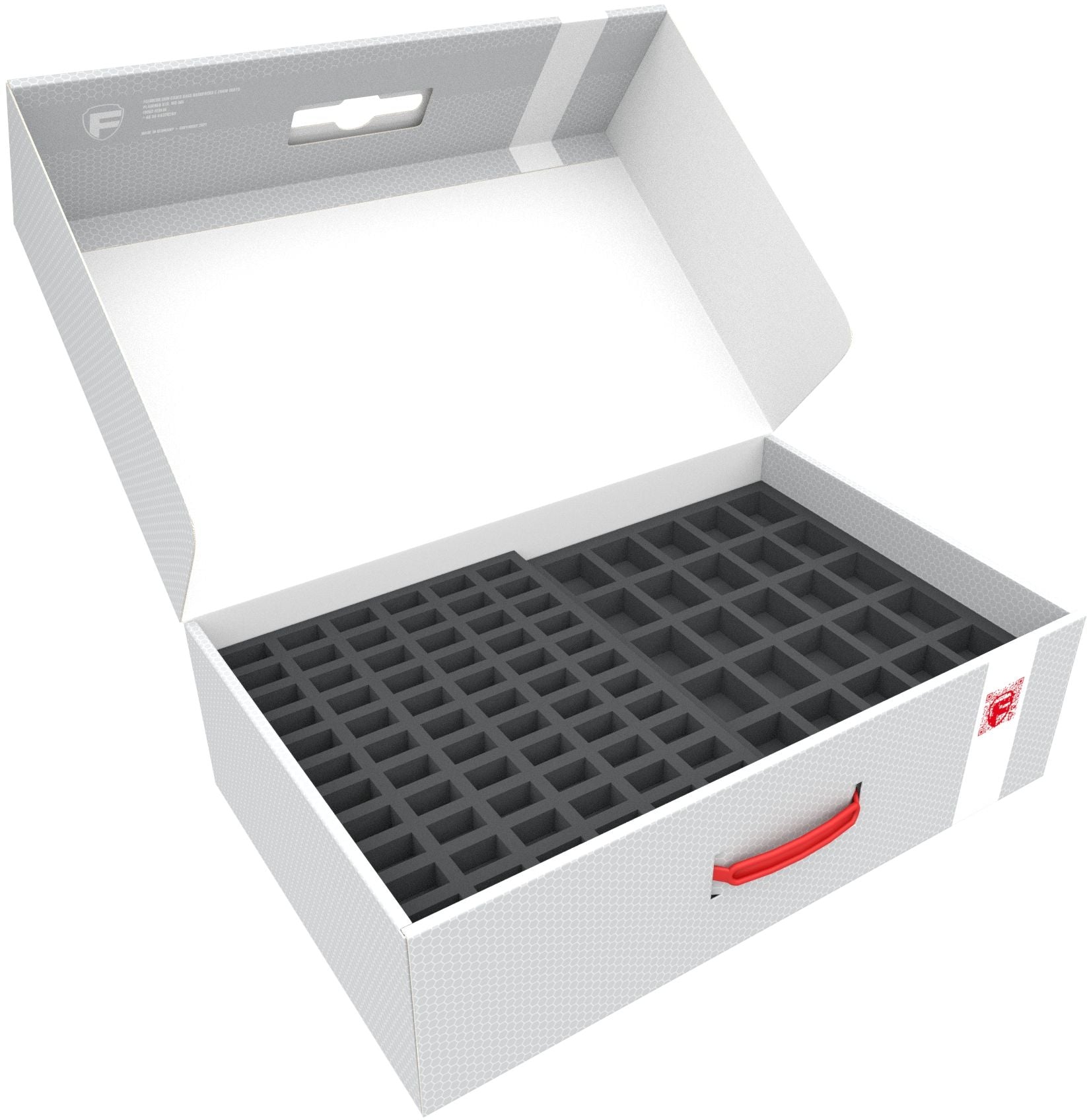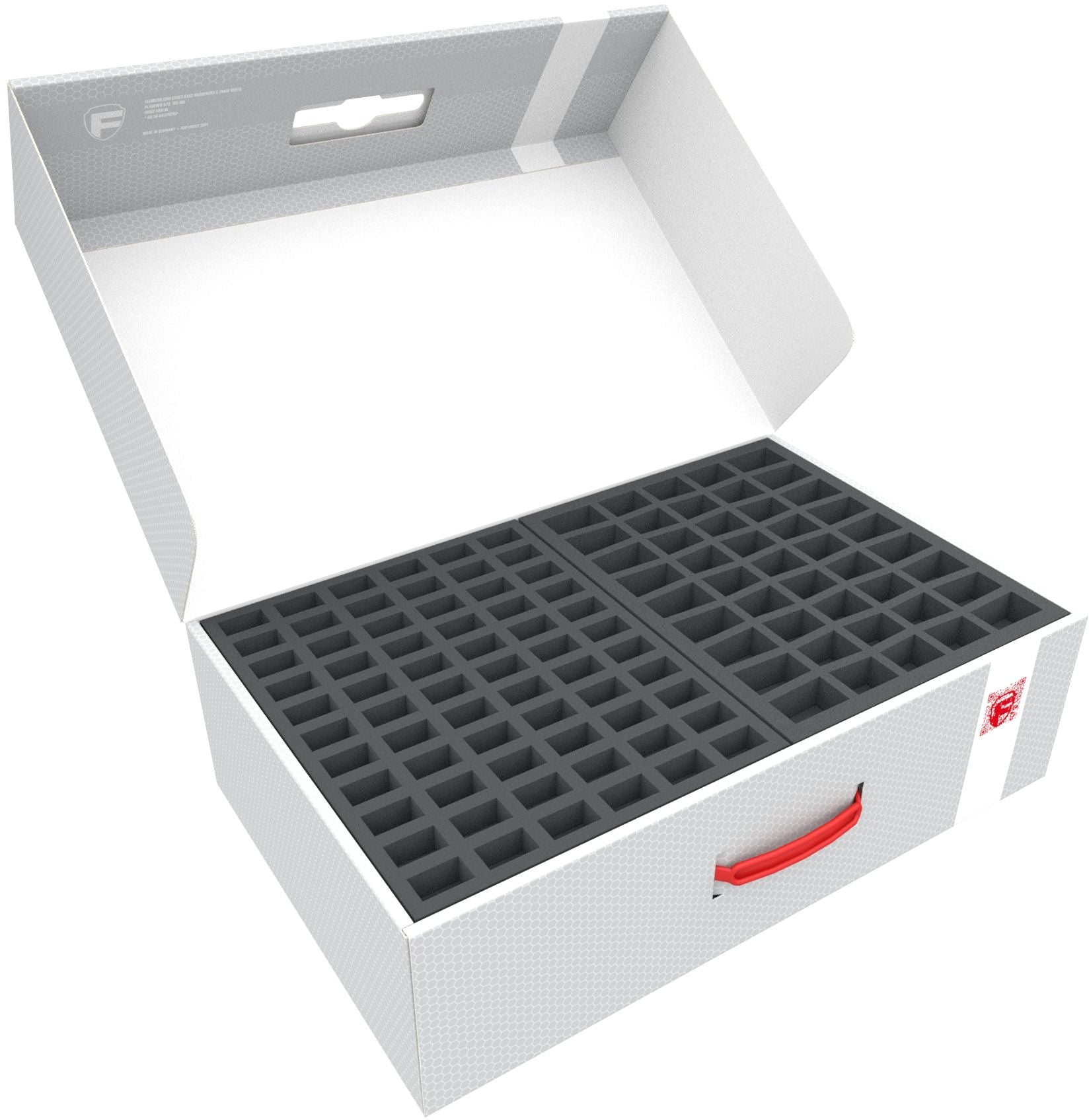 • 2 Full-Size foam trays with 25 compartments each, for bulky 20 mm tabletop figures like Knights Templar, cannons of the French Imperial Guard and miniatures with similar dimensions (FS035A030)