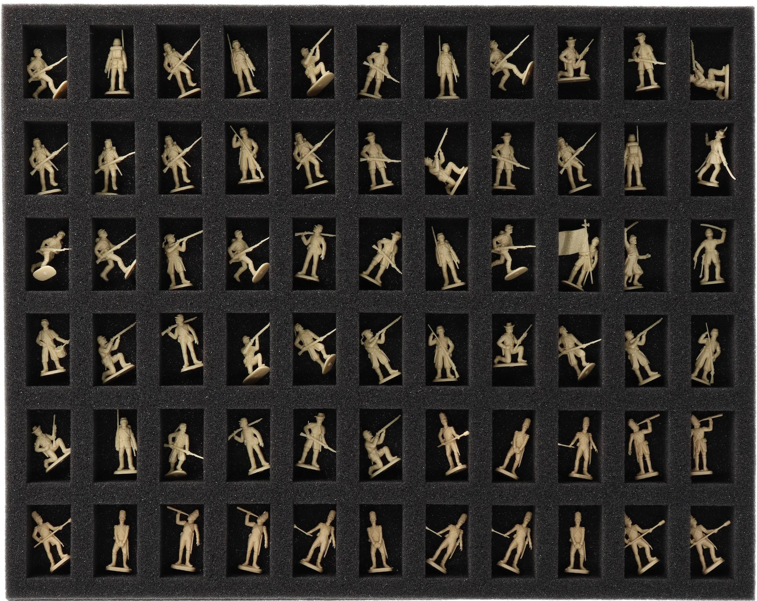 • 5 Full-Size foam trays with 66 compartments each, for 20 mm tabletop figures like Union States infantry, Zuaves from the American Civil War and miniatures with similar dimensions (FS030A004)