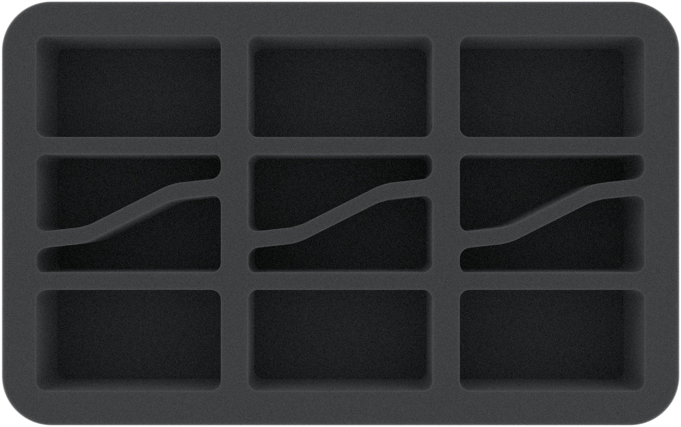 Precisely fitting compartments reliably protect your miniatures from damage. The soft foam ensures that your painted units arrive at the gaming table without scratches or chipped paint.
