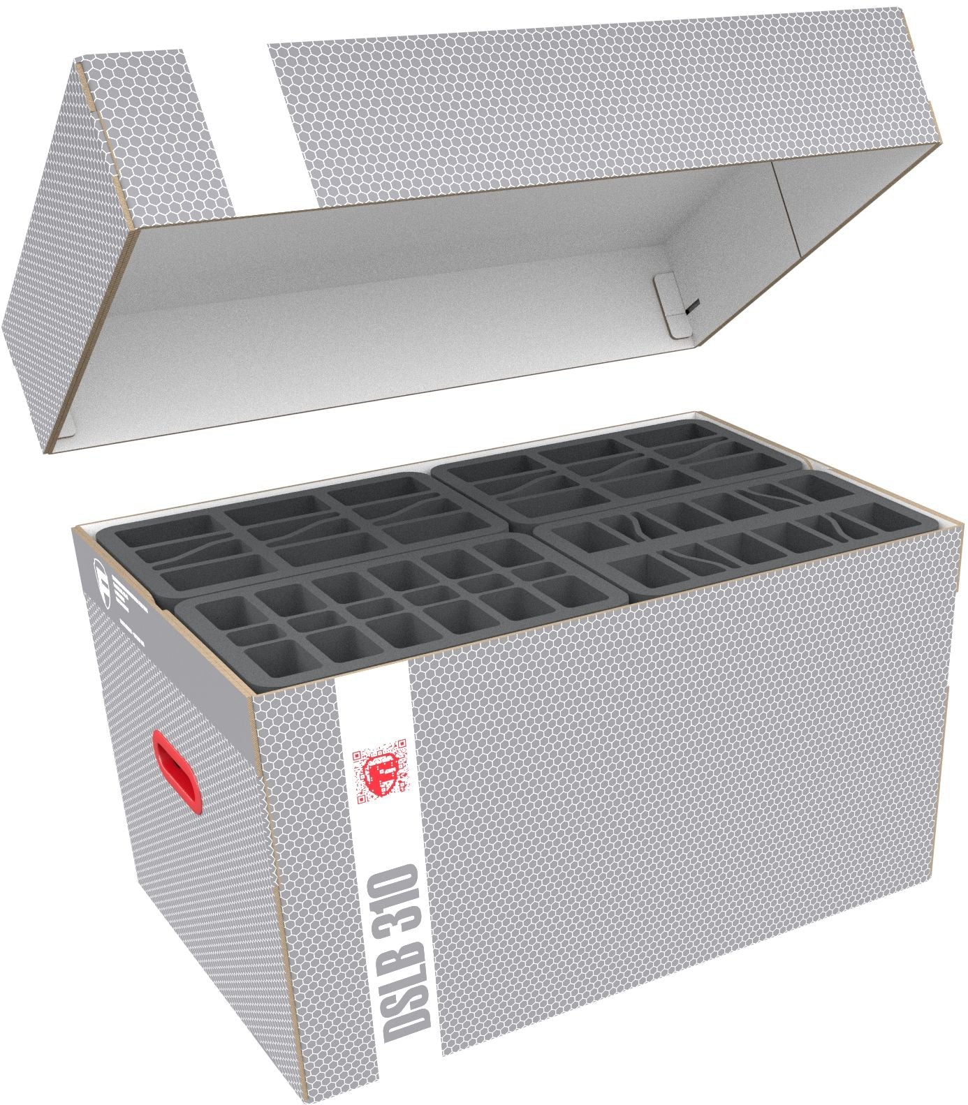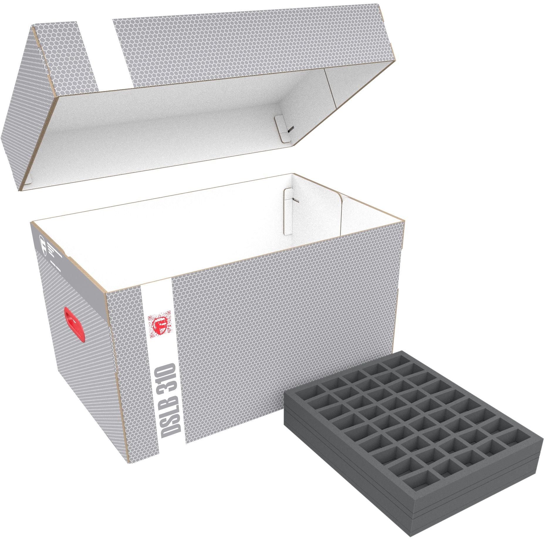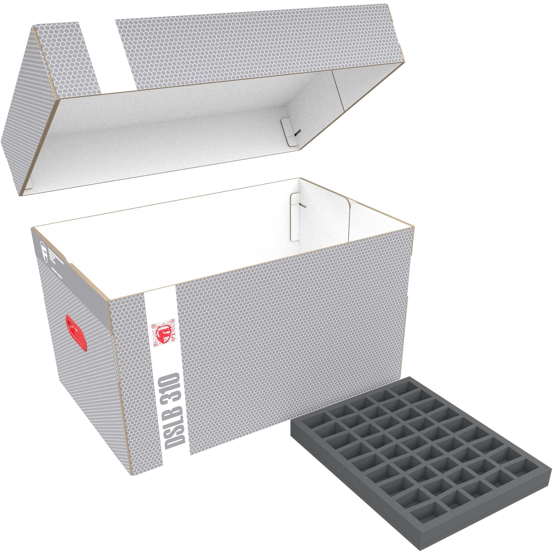 Your miniatures are optimally protected in this robust DSLB310 Storage Box. You can safely transport up to 644 Tabletop-Miniatures in a scale of 1:72 (20mm) in the custom-made Feldherr foam trays.