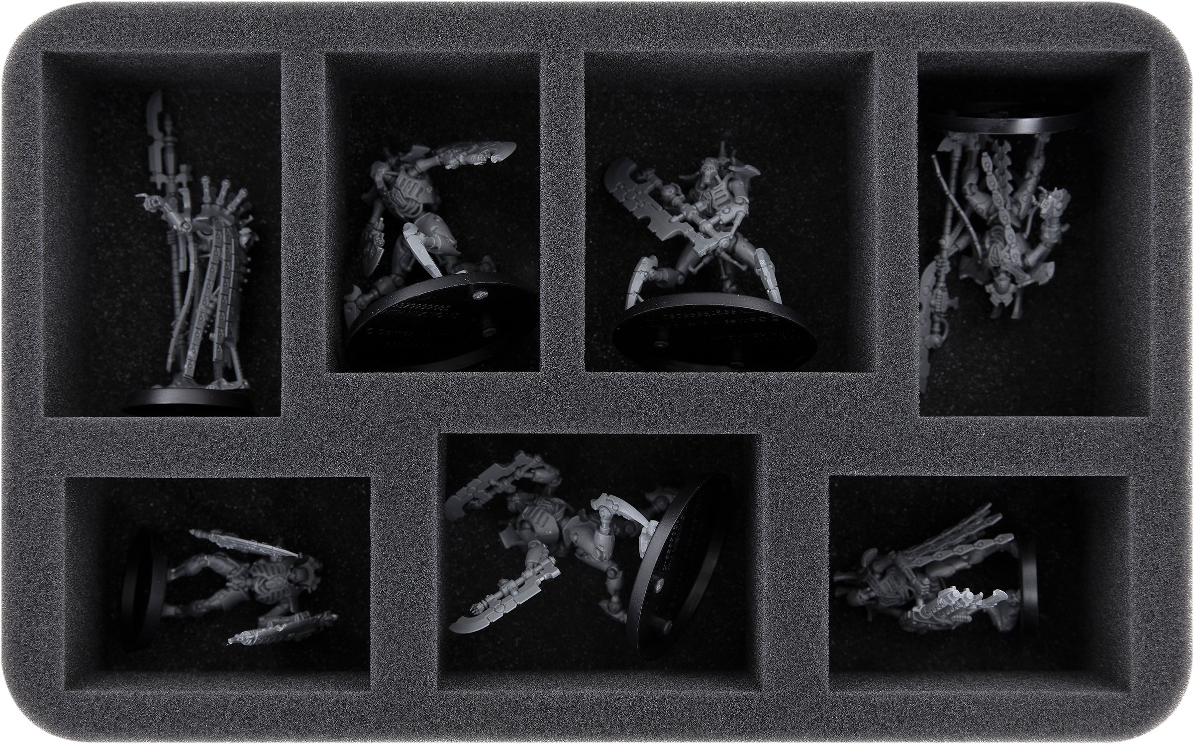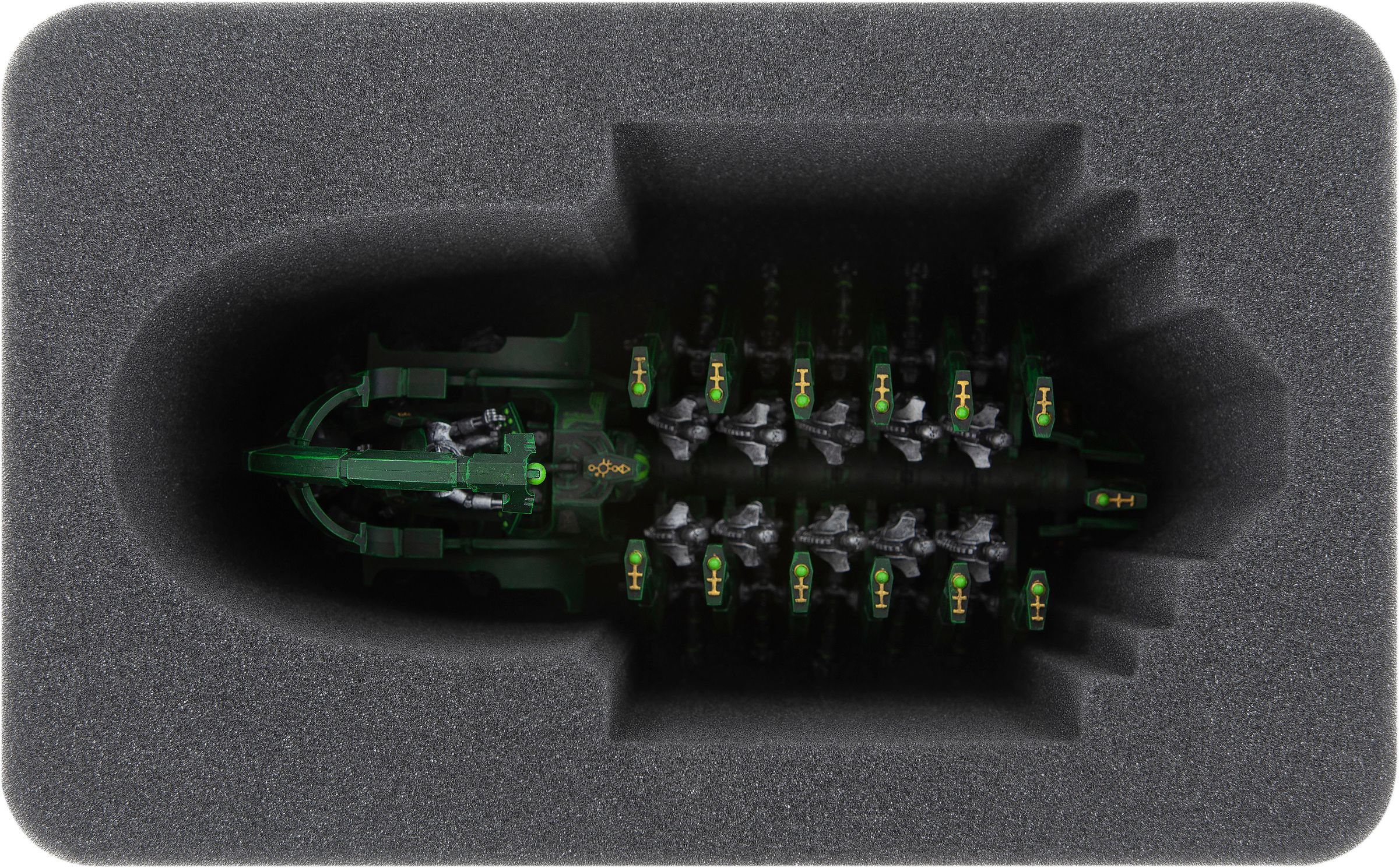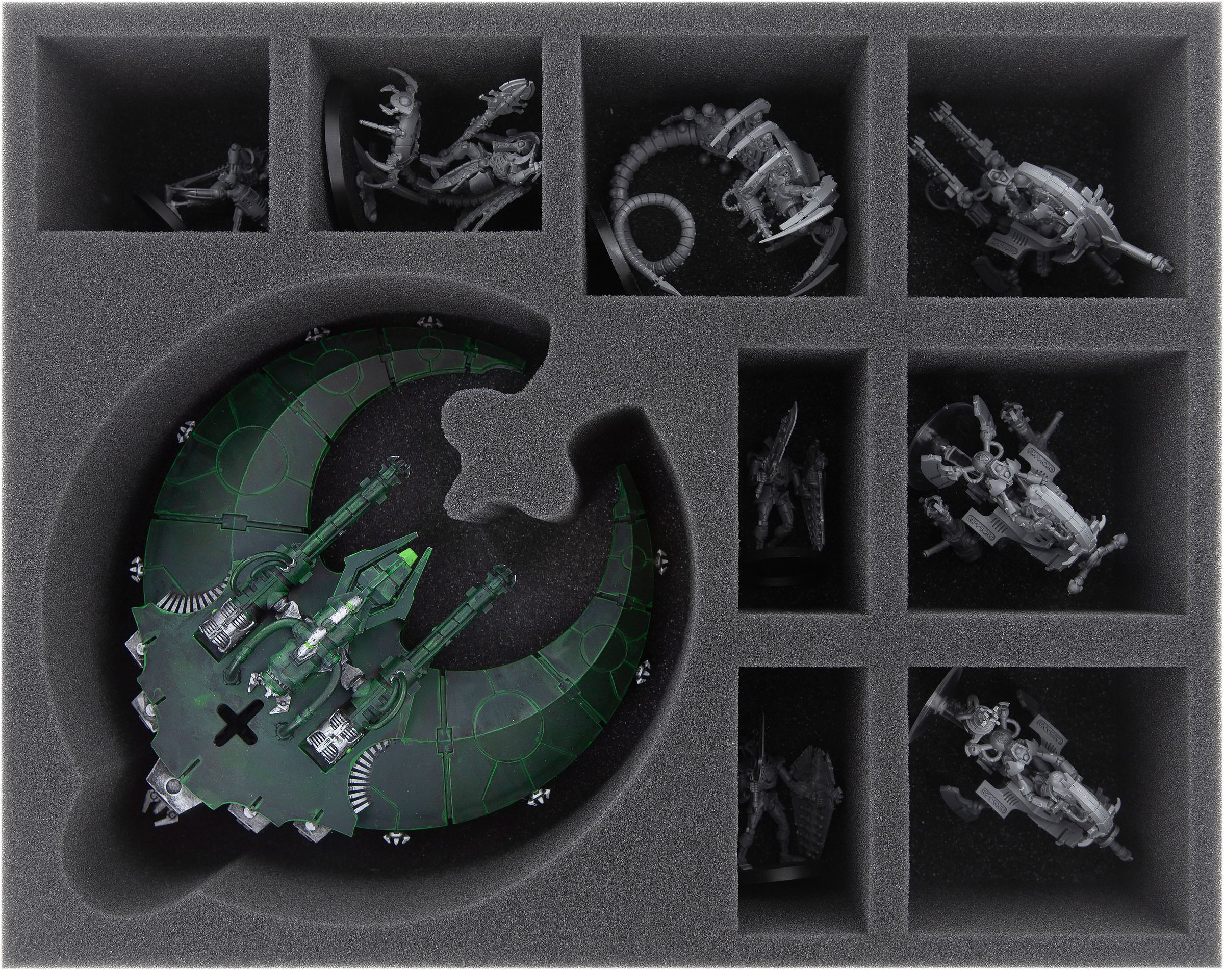 Custom-fit compartments made of soft foam reliably protect your miniatures from damage and also ensure that your painted units arrive safely at the tabletop without scratches.