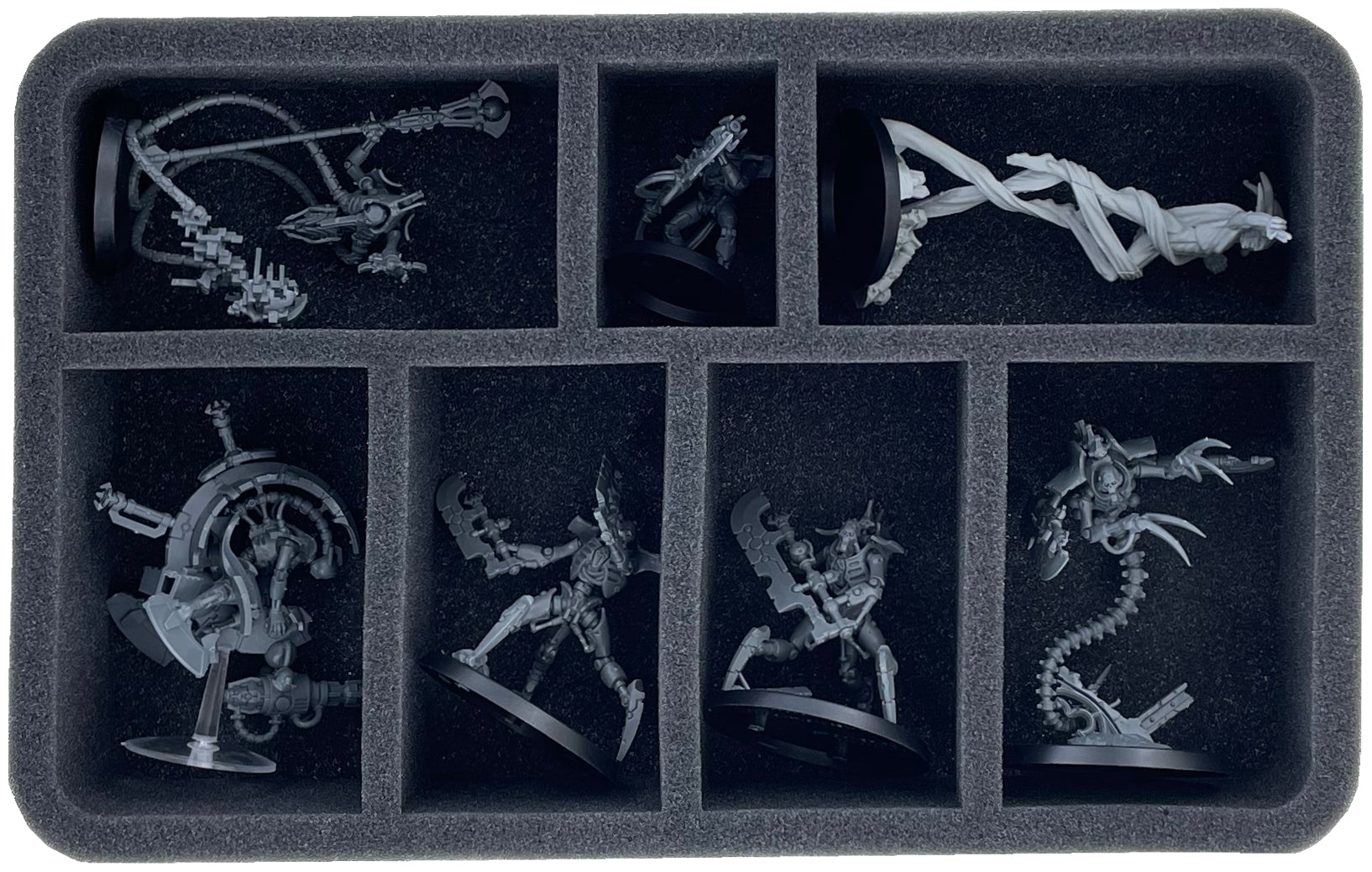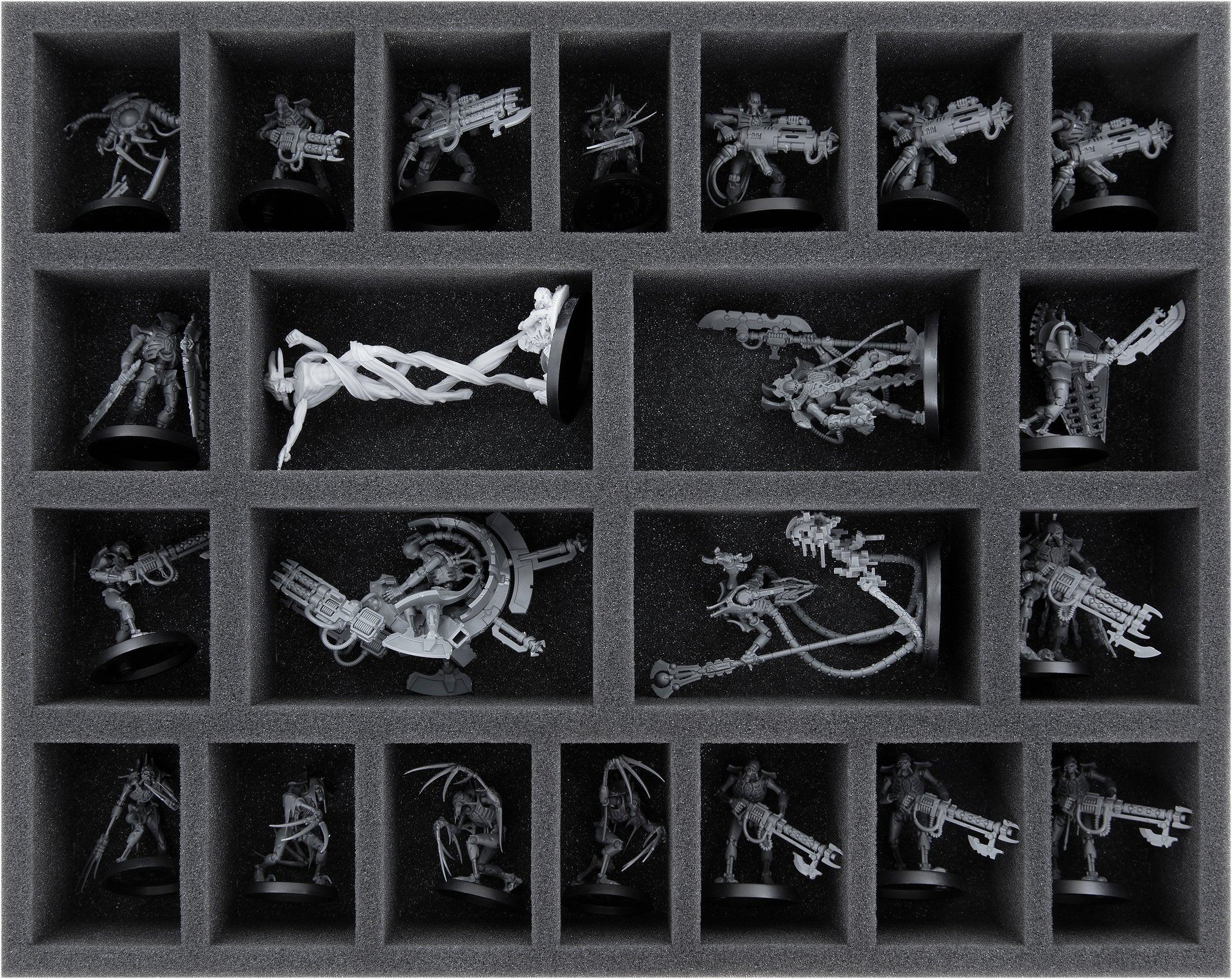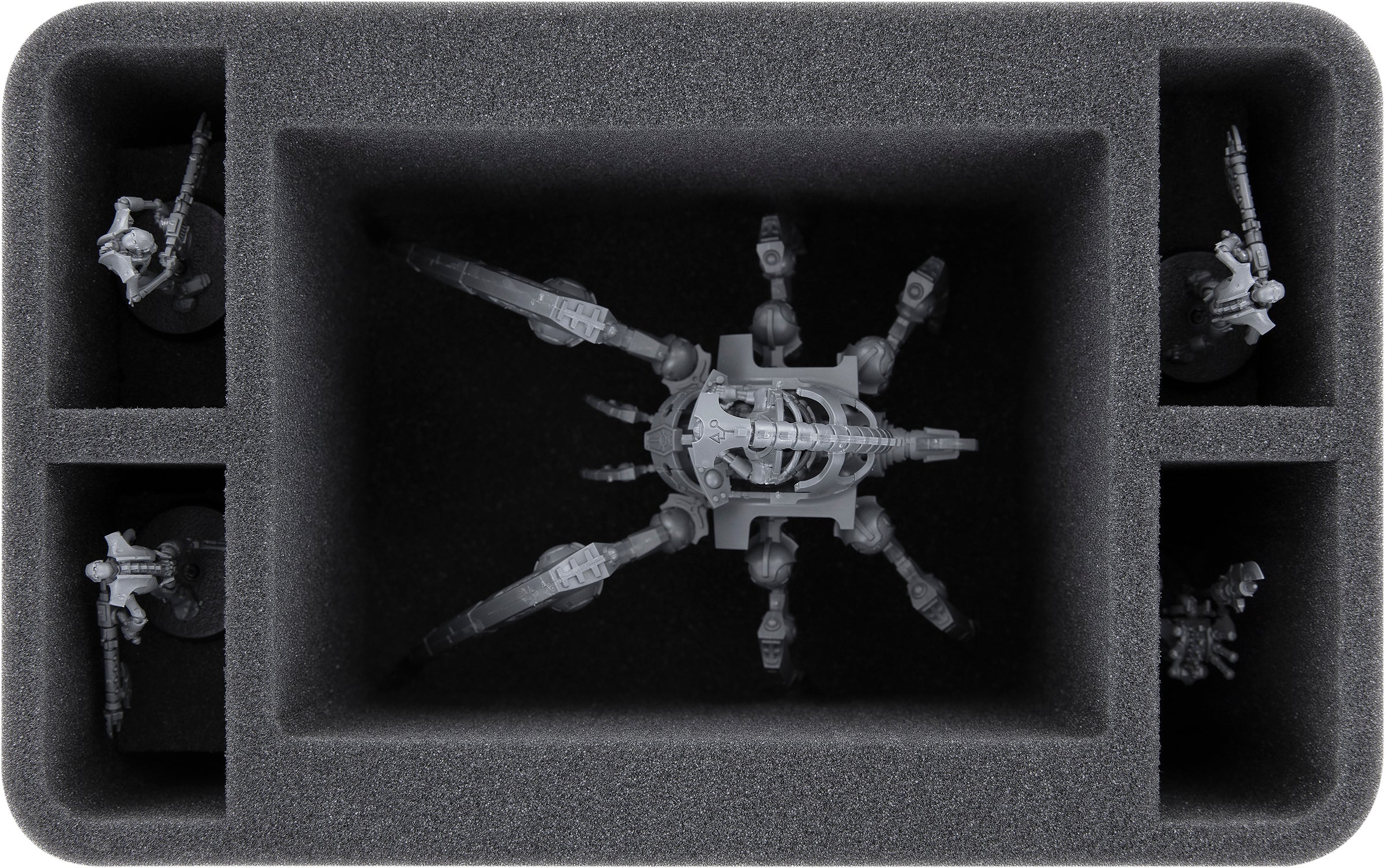 Custom-fit compartments made of soft foam reliably protect your miniatures from damage and also ensure that your painted units arrive safely at the tabletop without scratches.