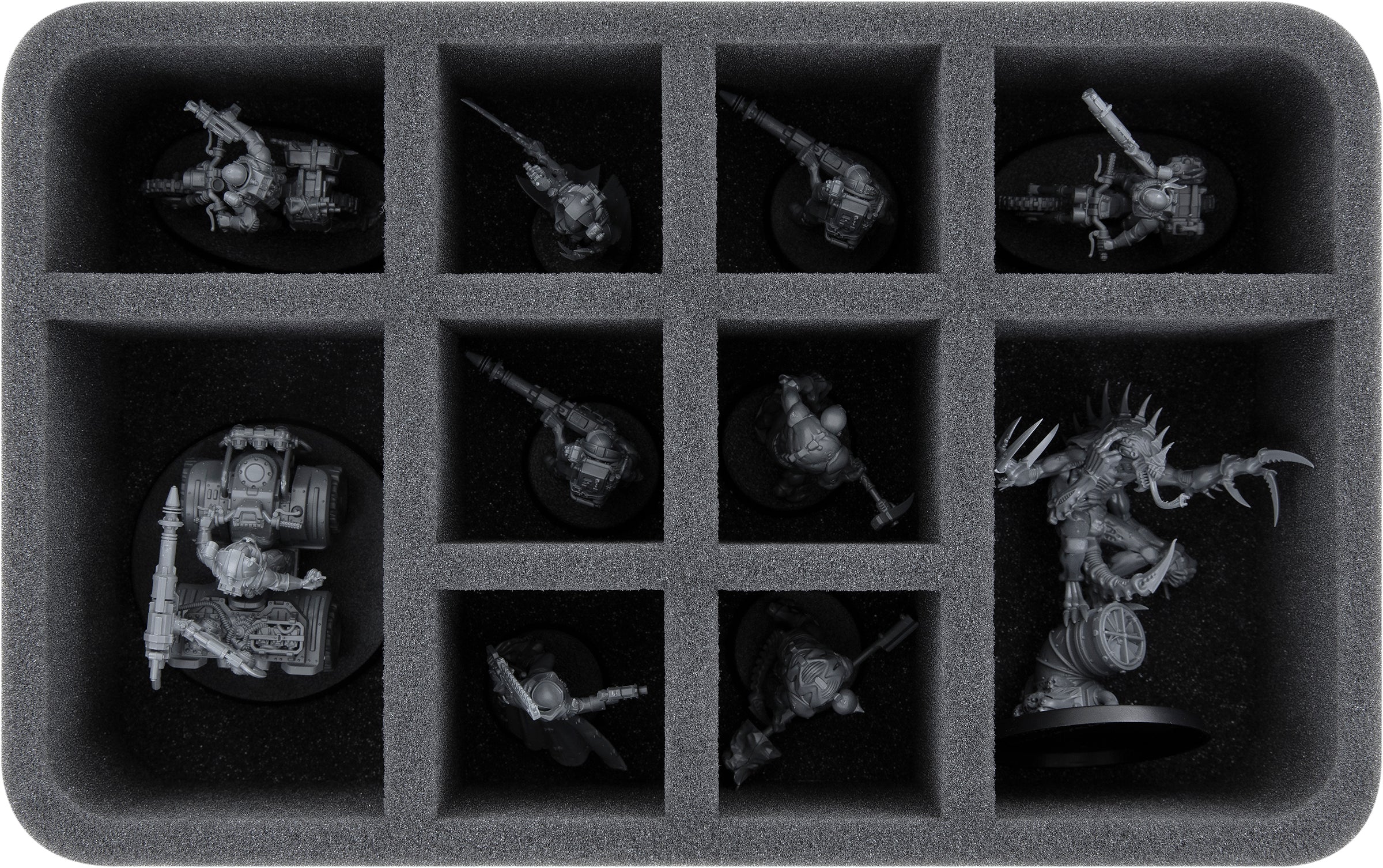 Custom-fit compartments made of soft foam reliably protect your miniatures from damage and also ensure that your painted units arrive safely at the tabletop without scratches.