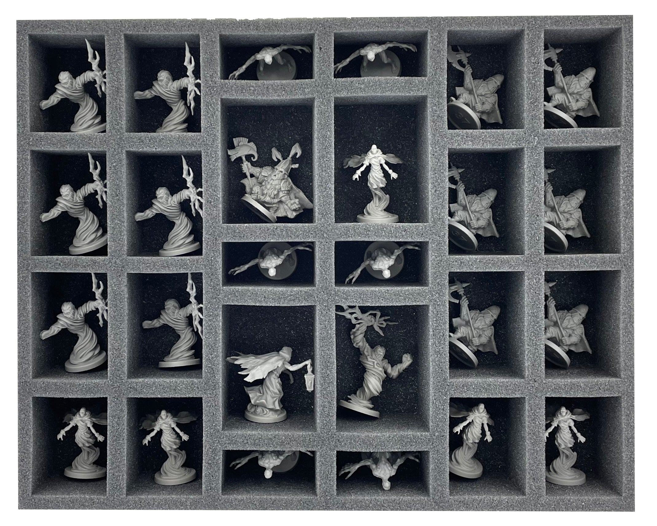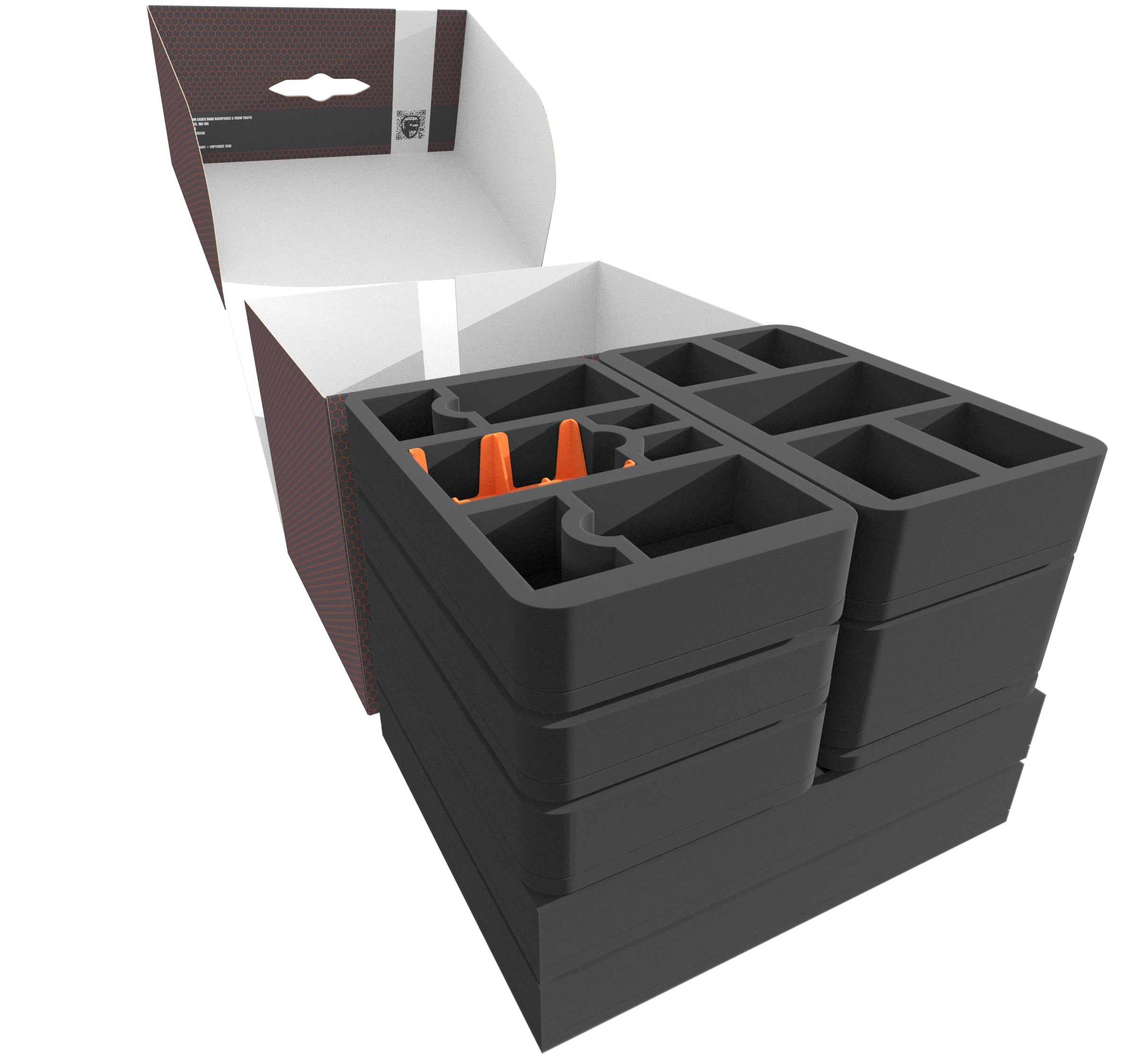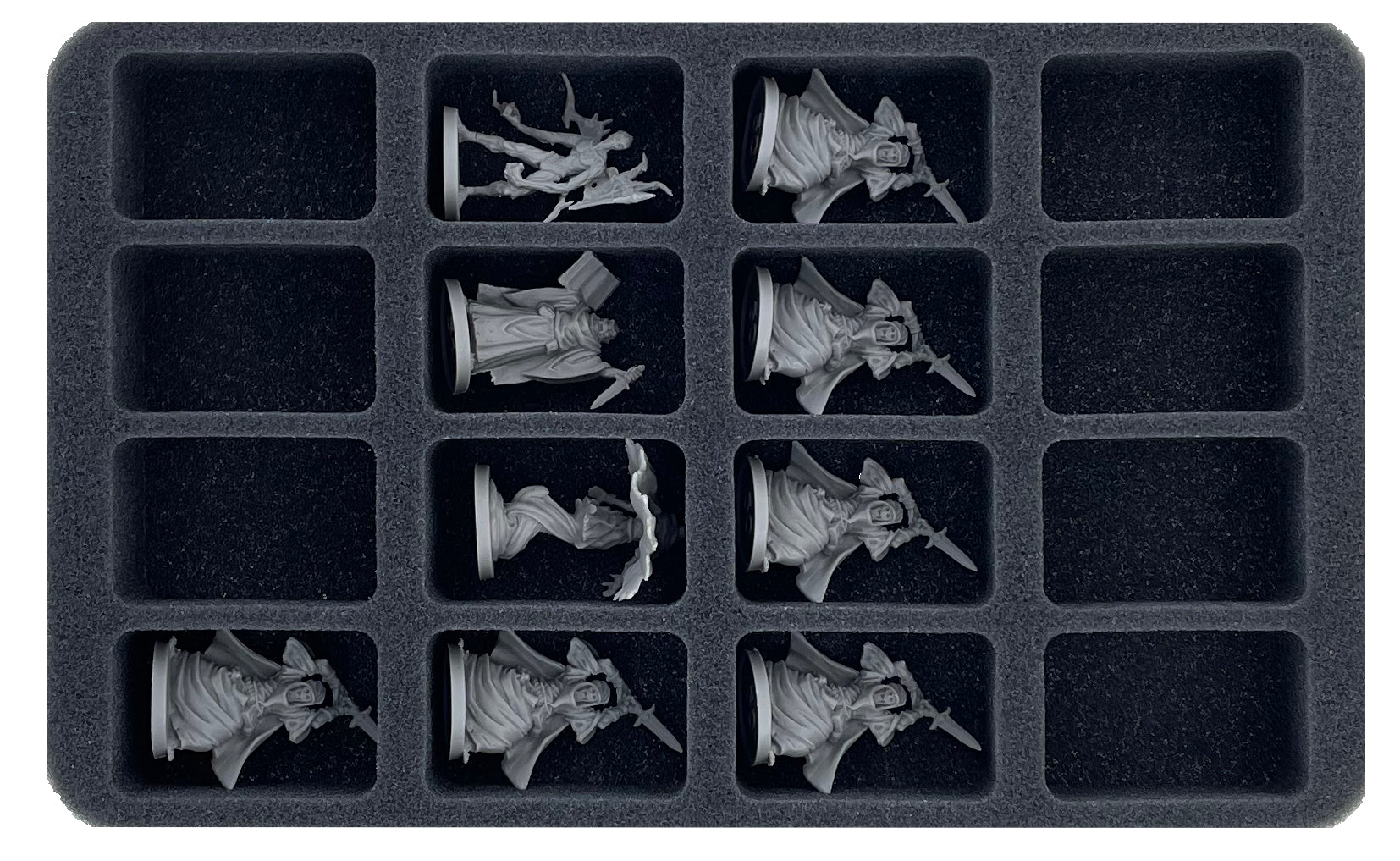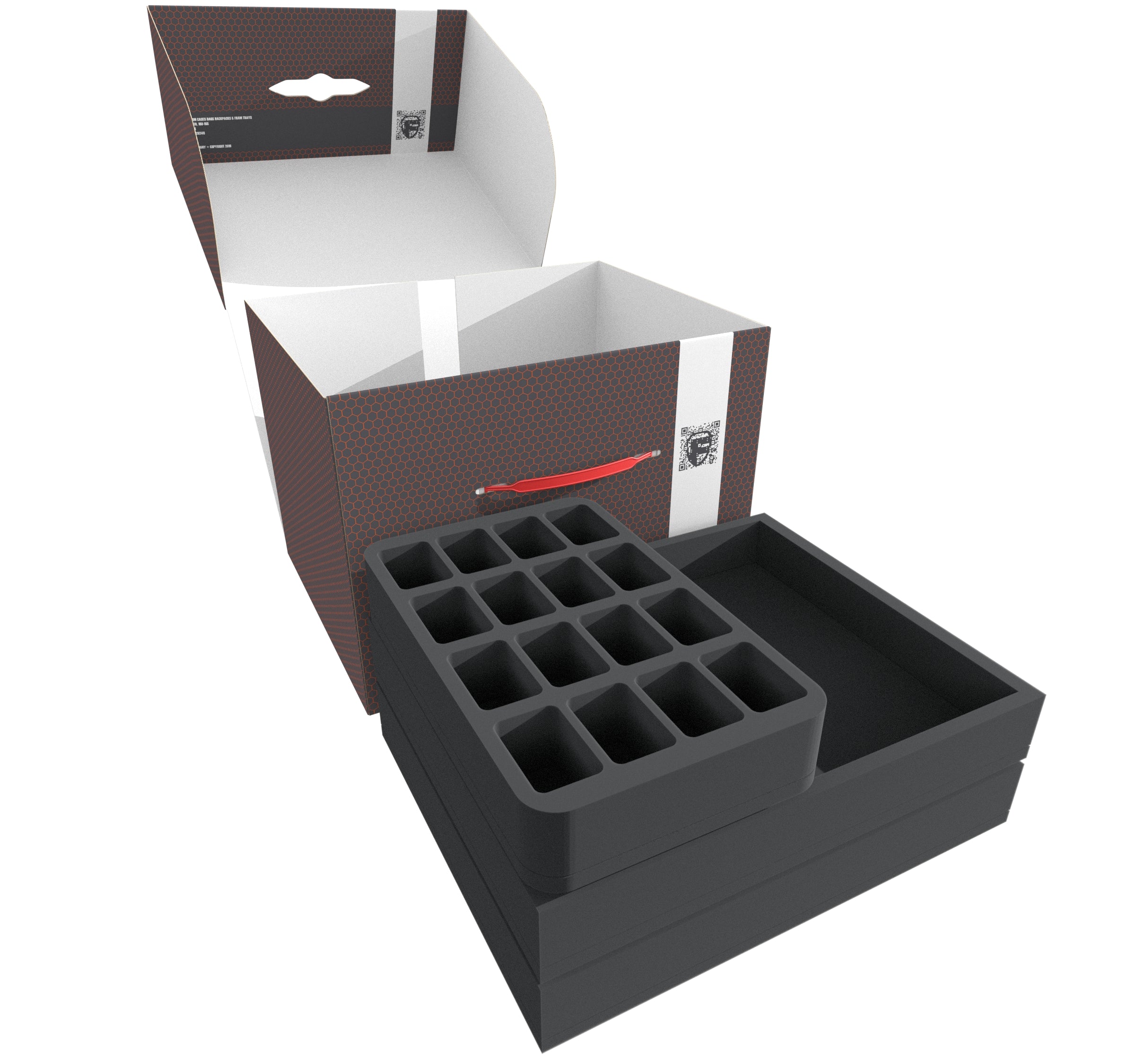 - 1 Half-Size foam tray with 16 compartments for miniatures (HS050BF05BO)