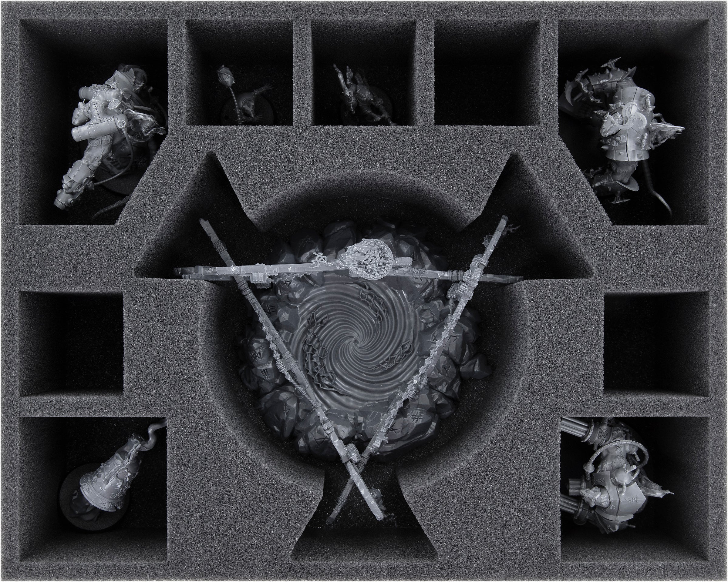 • 3 Full-Size foam trays with each 10 compartments for three Gnawhole, Warlock Bombardier, Storm Fiends, Doom-Flayers, Clanrats, Skaven Verminus Spiteclaw’s Swarm (FS085A002)