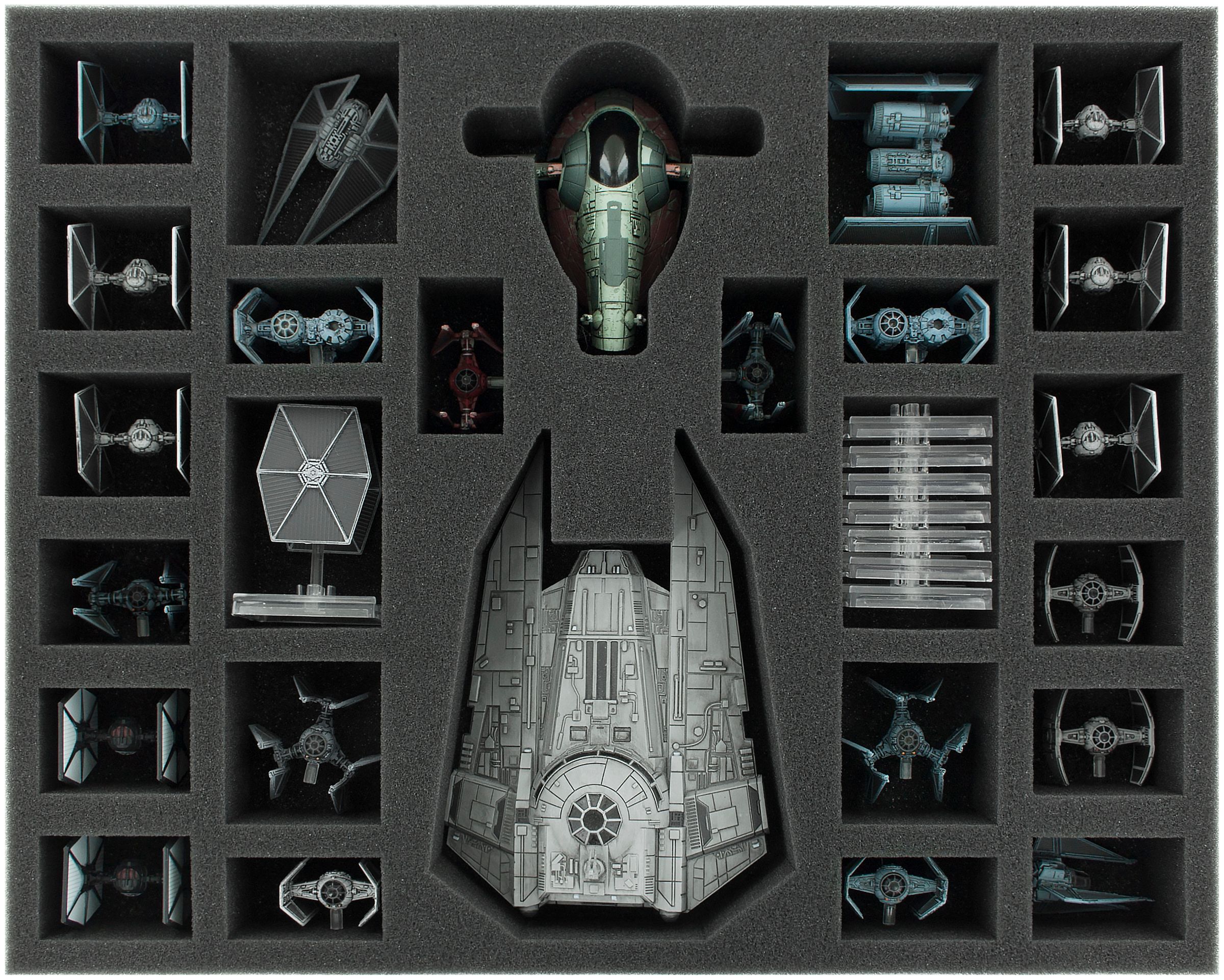 - 1 Full-Size foam tray for Decimator, Slave 1 and Tie Fighters (FSJU050BO)