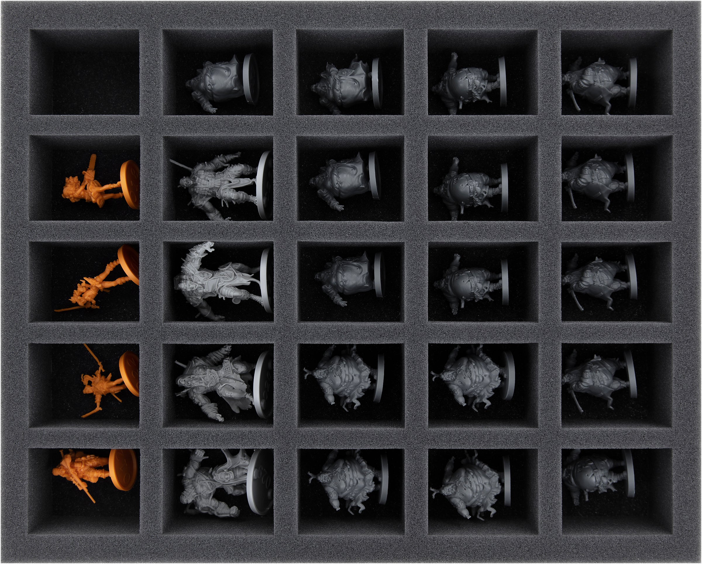 • 1 Full-Size foam tray with 25 compartments for miniatures (FSLQ050BO)