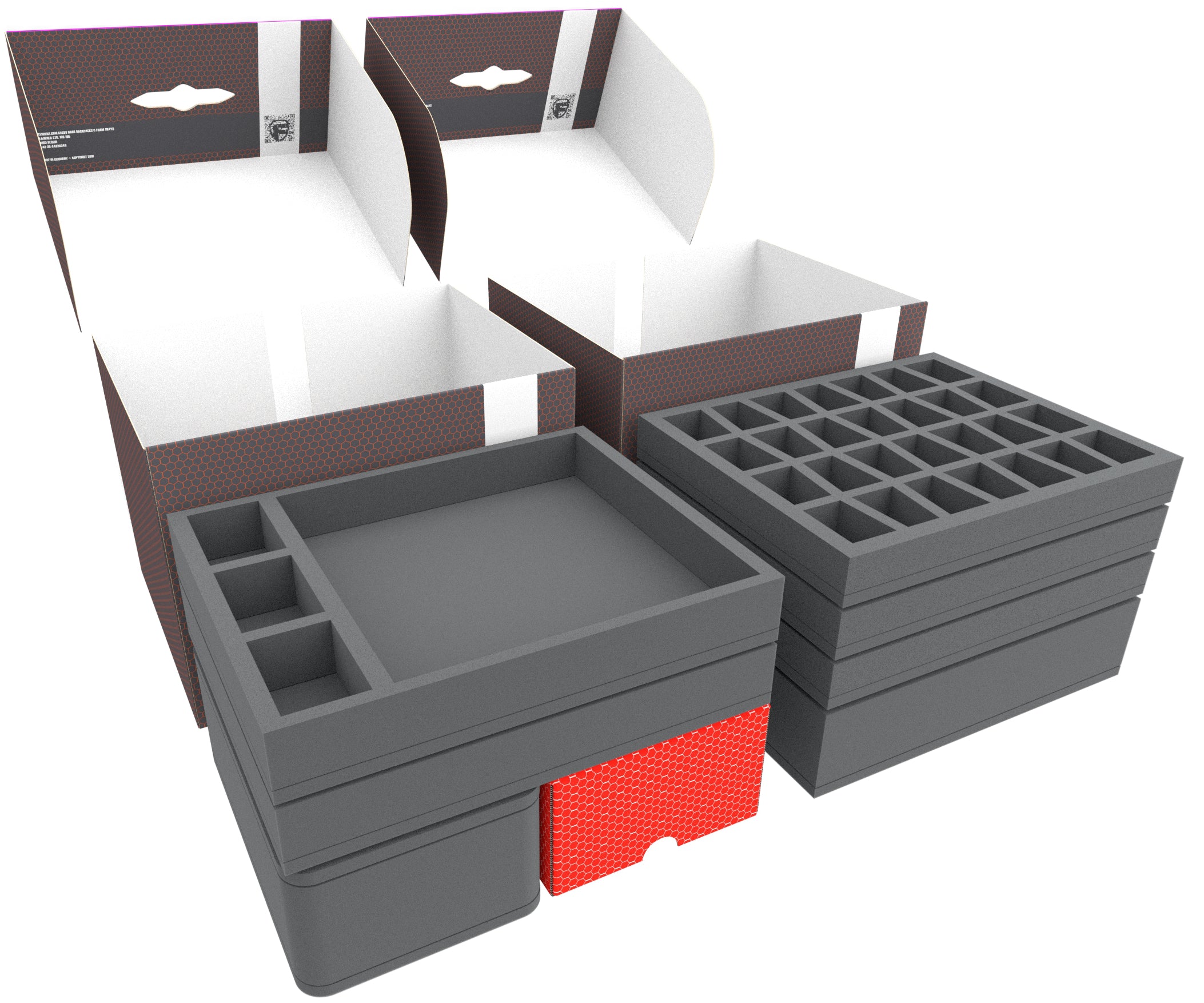 Without any superpowers, but with a lot of field experience, we have put together a suitable bundle for you. Two Storage Boxes with custom-fit cut Feldherr foam tray and convenient card boxes help you to compactly store the more than 100 miniatures and the entire game material. This means that your two arms are enough for you to safely transport your treasures.