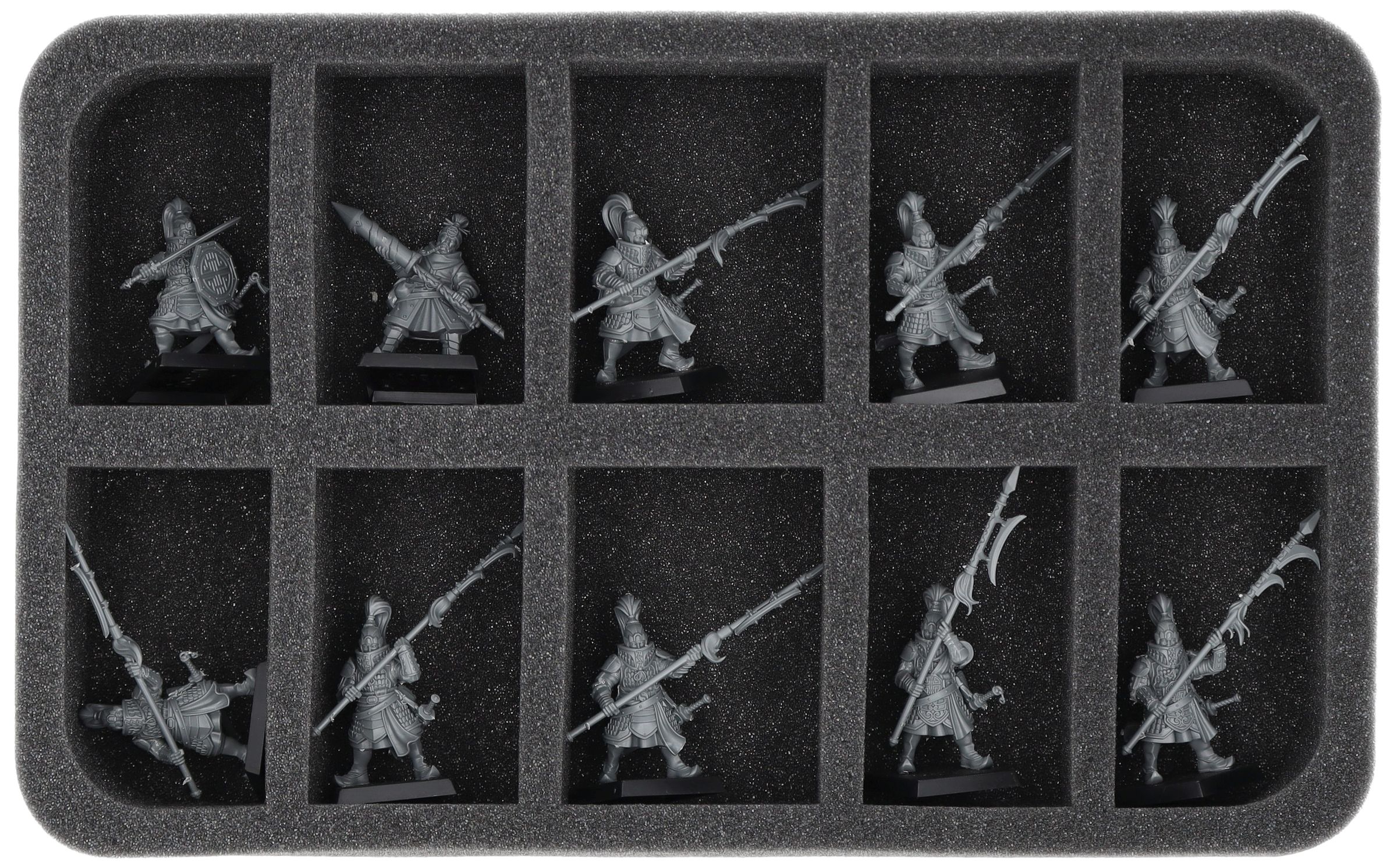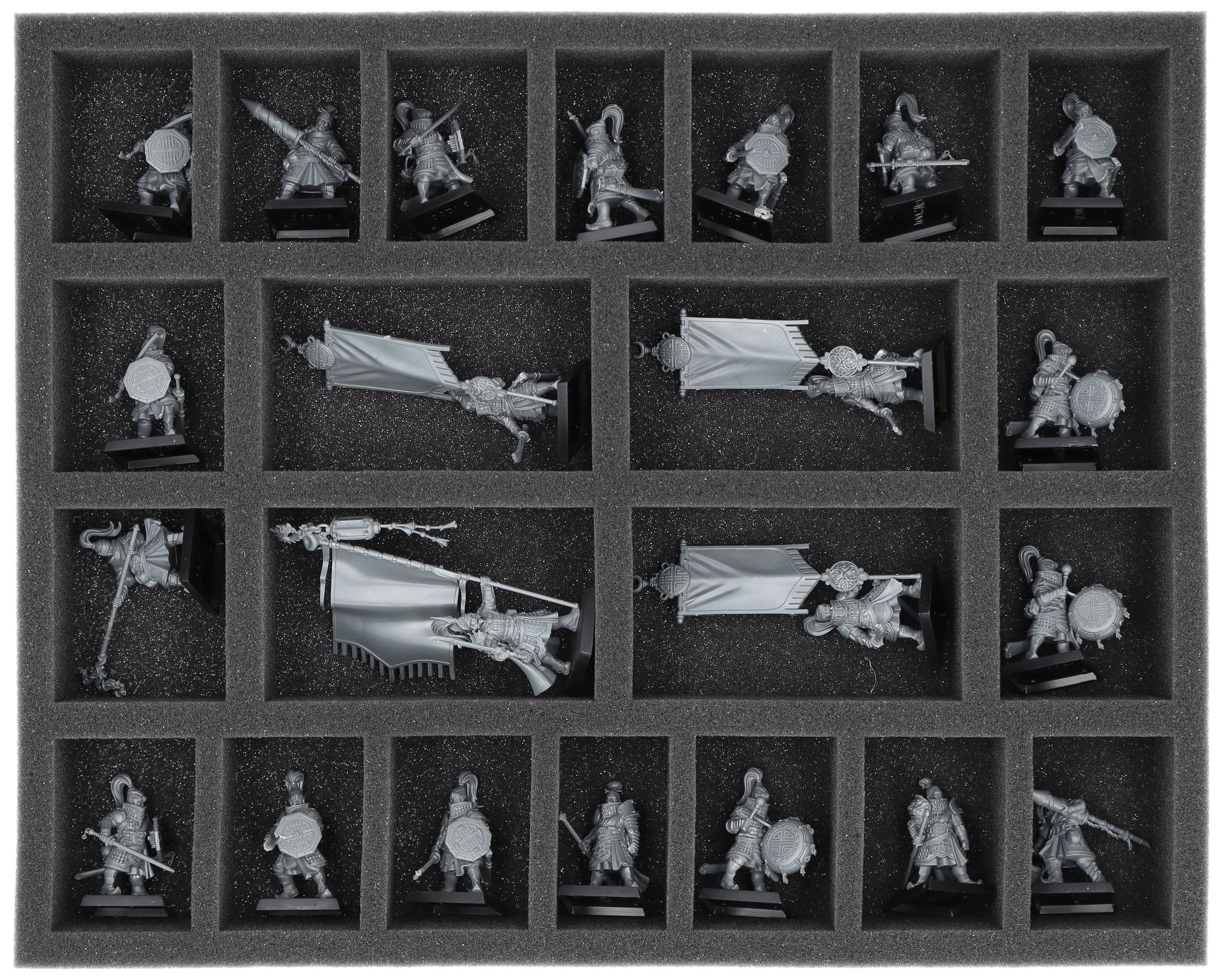 - Foam trays with differently sized compartments for infantry, cavalry and war machines