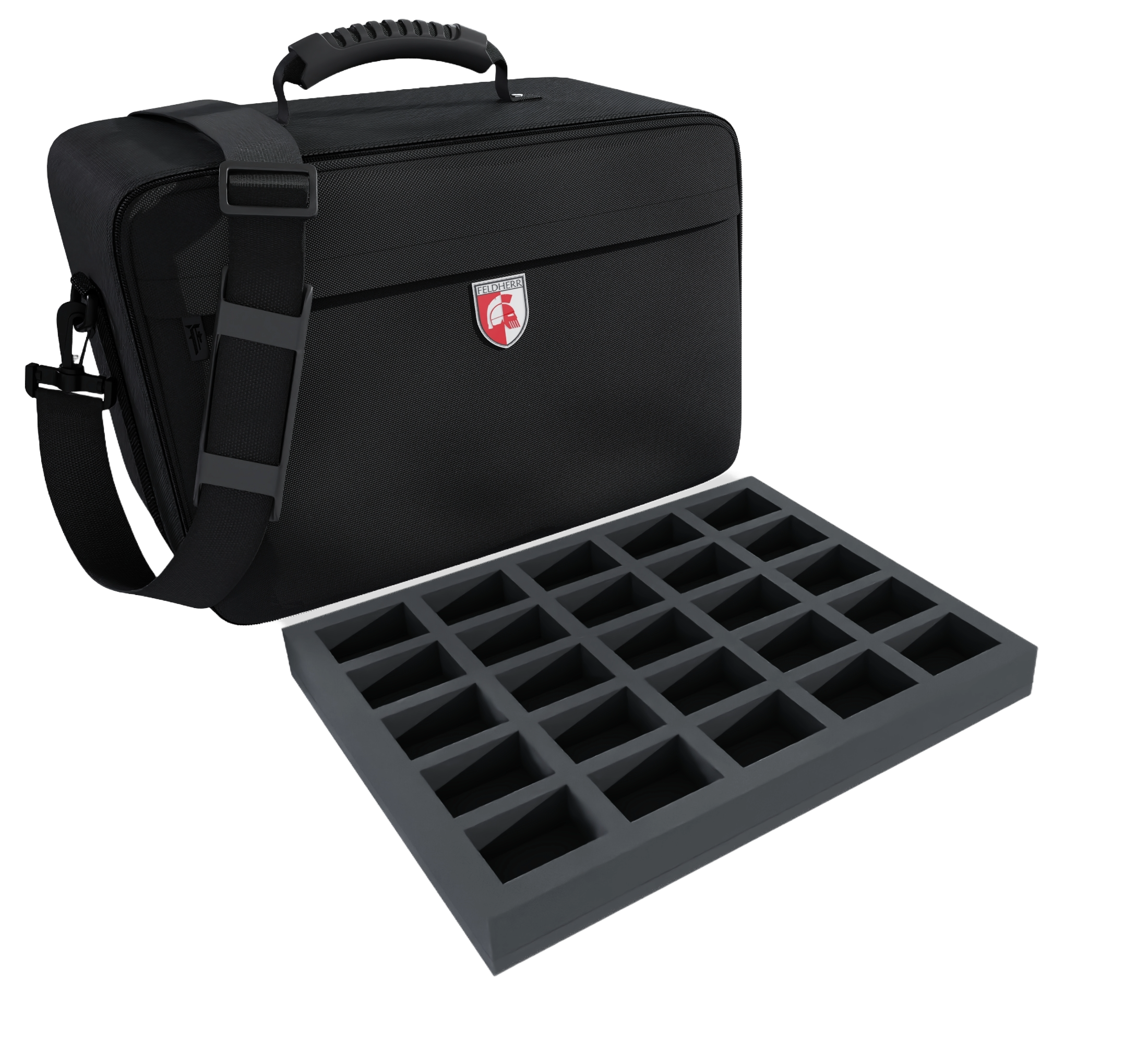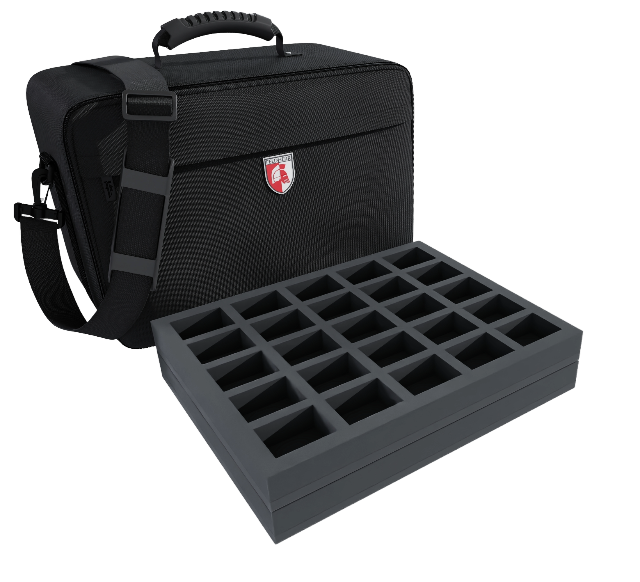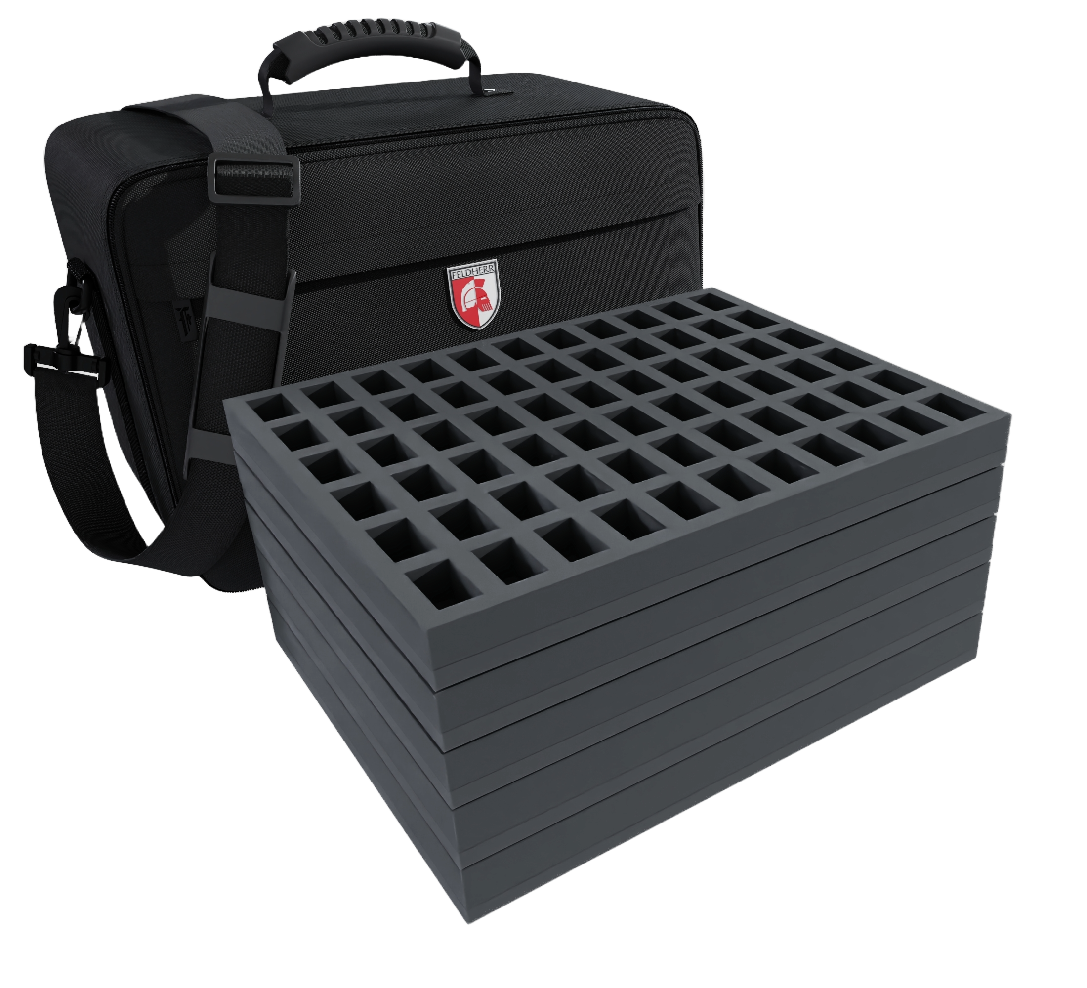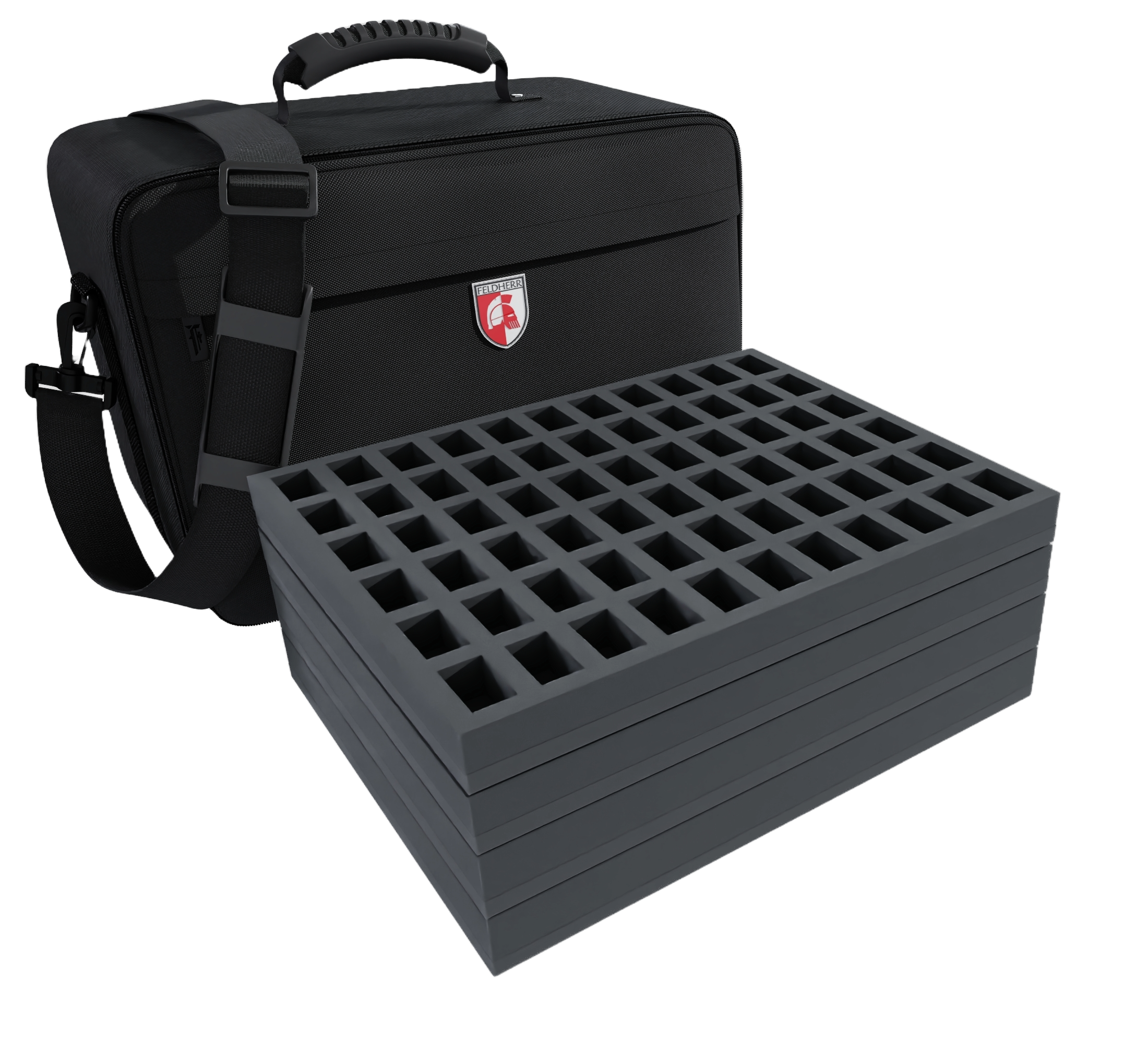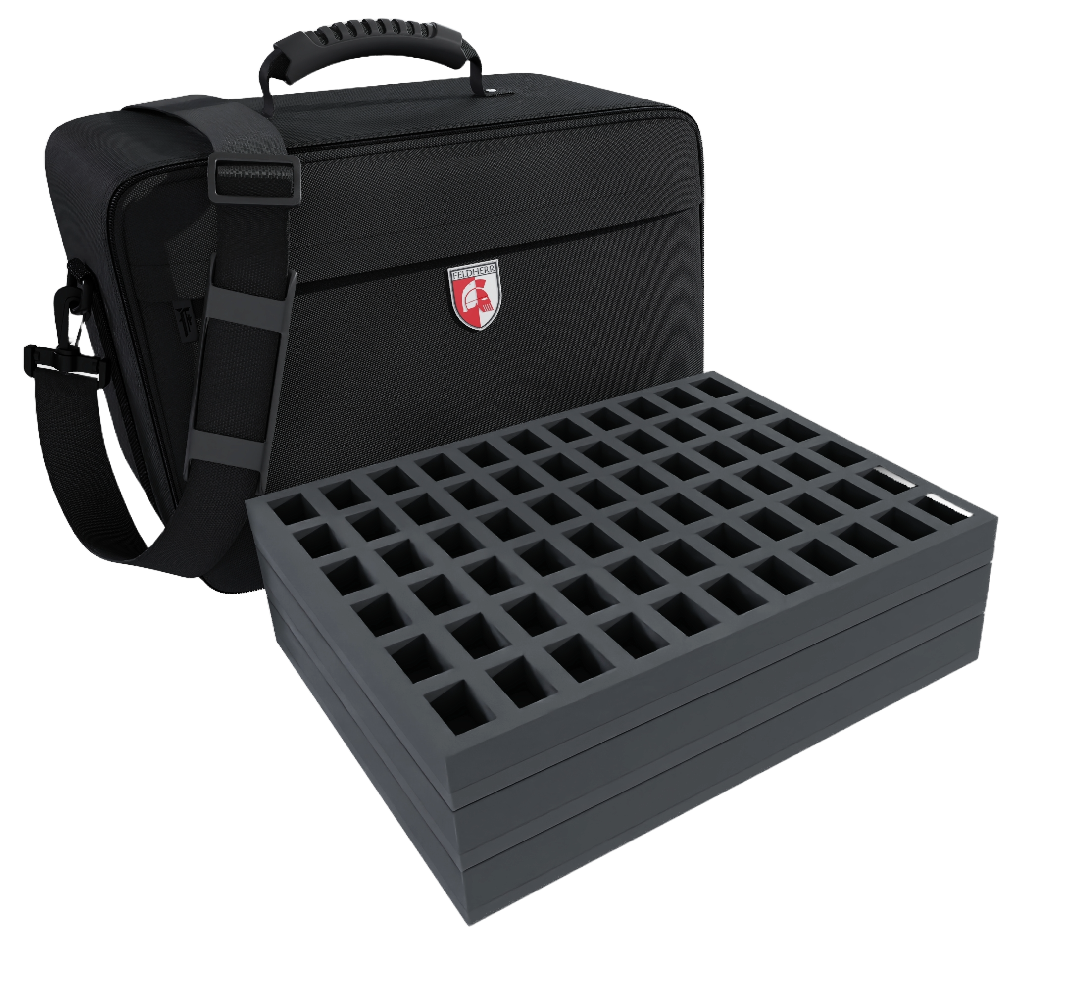 Your miniatures are optimally protected in this MAXI PLUS bag with matching Feldherr foam inserts. It can be used to transport up to 284 tabletop miniatures in 1:72 scale (20 mm), e.g. for miniatures from the games Behind Omaha, Rapid Fire and Point Blank Game, models from historical settings and miniatures with similar dimensions.