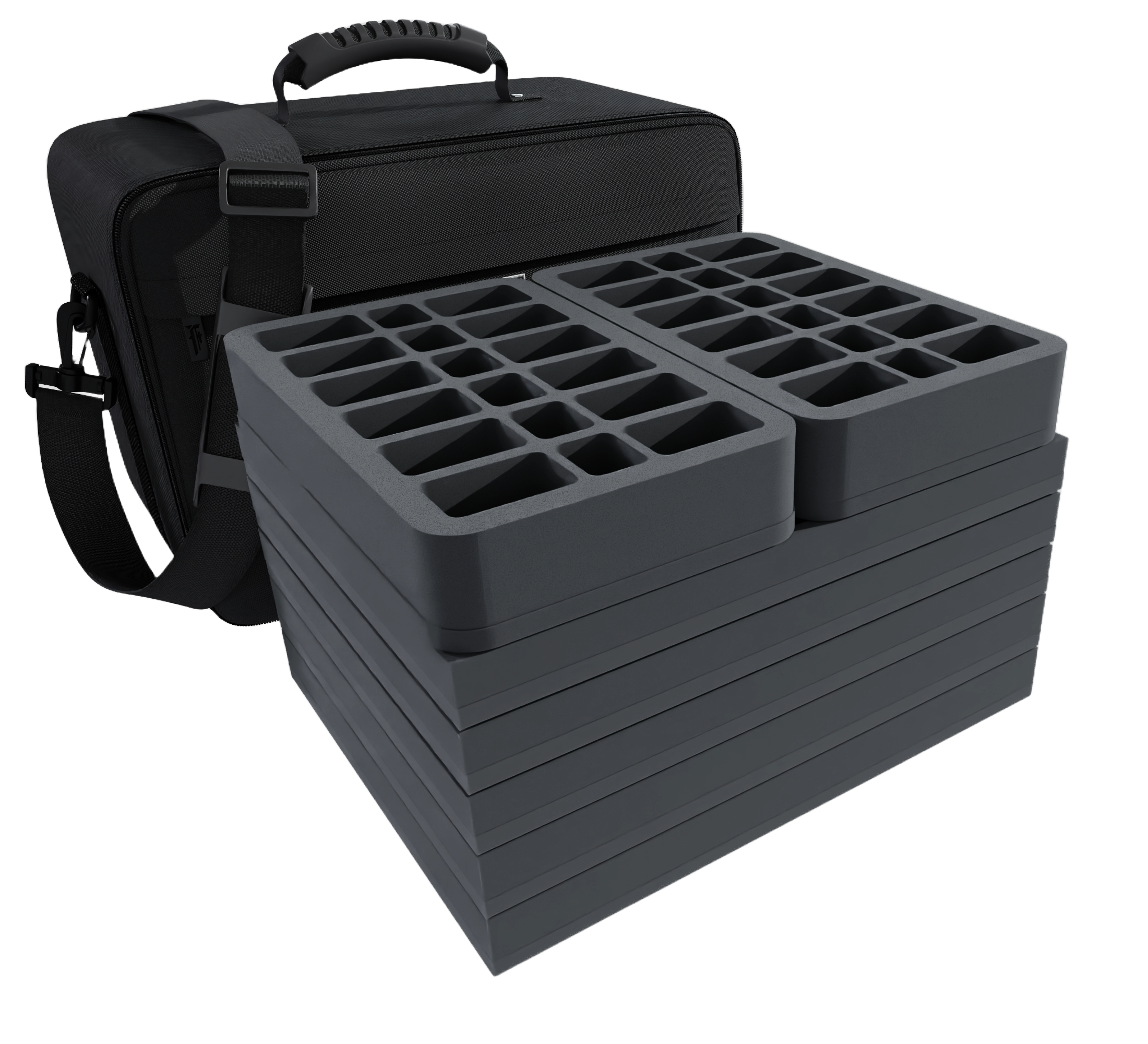 • 2 Full-Size foam trays with 25 compartments each, for bulky 20 mm tabletop figures like Knights Templar, cannons of the French Imperial Guard and miniatures with similar dimensions (FS035A030)