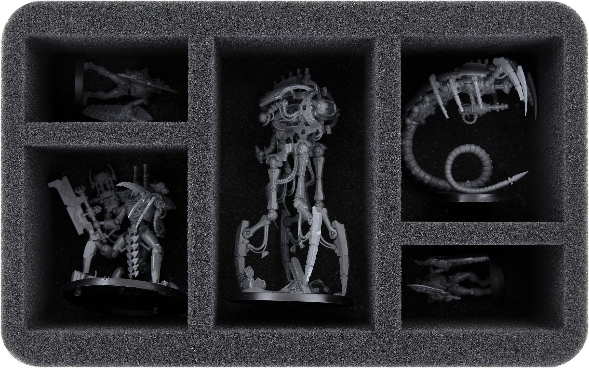 The insert with 5 compartments (HSMEYG075BO) provides a large compartment for the Kanoptech Reanimator. The Skorpekh Lord also gets its own compartment here.