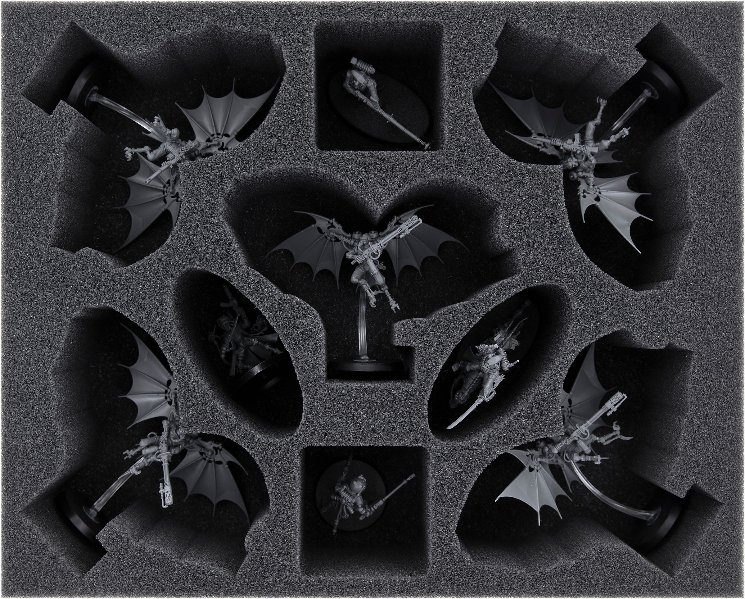 • 1 Full-Size foam tray with 9 compartments for Pteraxii in both unit types (Skystalkers, Sterylizors), Serberys Raiders, Sulphurhounds (FSMEXU075BO)
