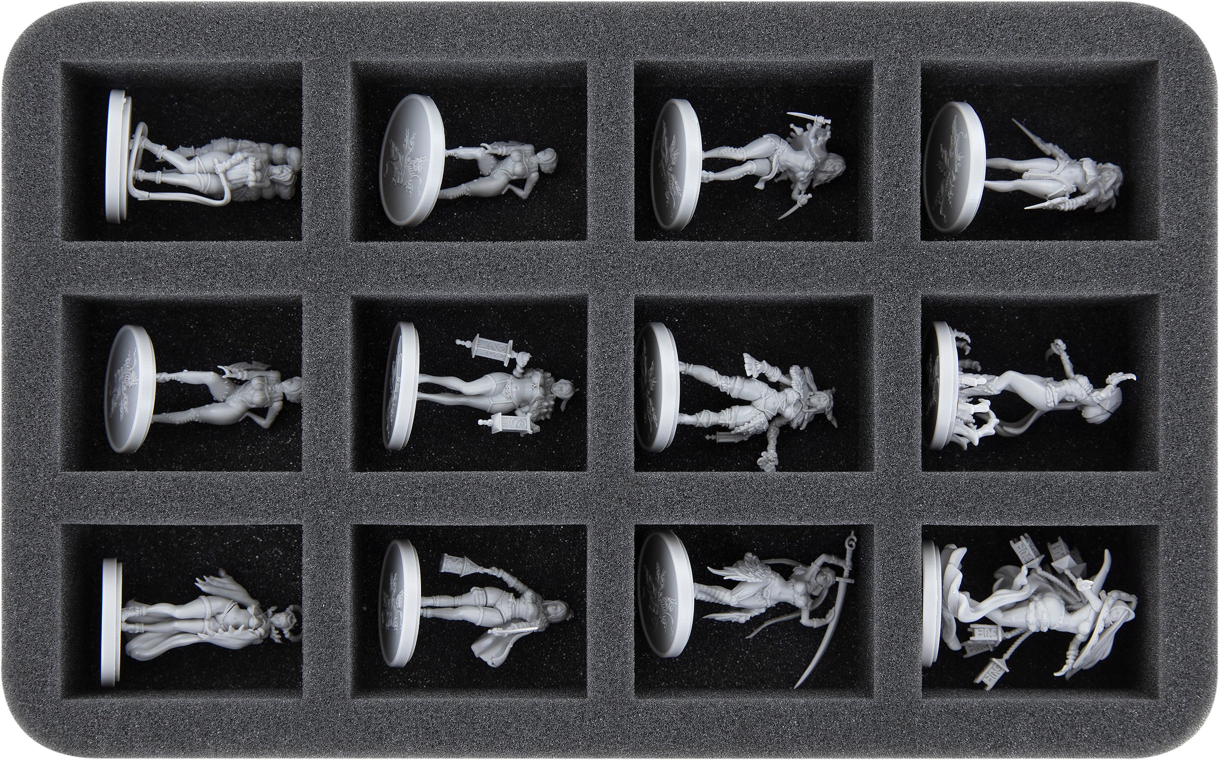 The custom-fit compartments ensure a firm fit and prevent your figures from sliding around and bumping into each other. So there will be no friction between Pinup Leather Queen and Pinup Phoenix Dancer, even during long transportation. The soft, fine-pored foam protects intricate details, such as weapons and sculpted jewelry, from snapping and the colors of your painted models from scratches and paint abrasion.