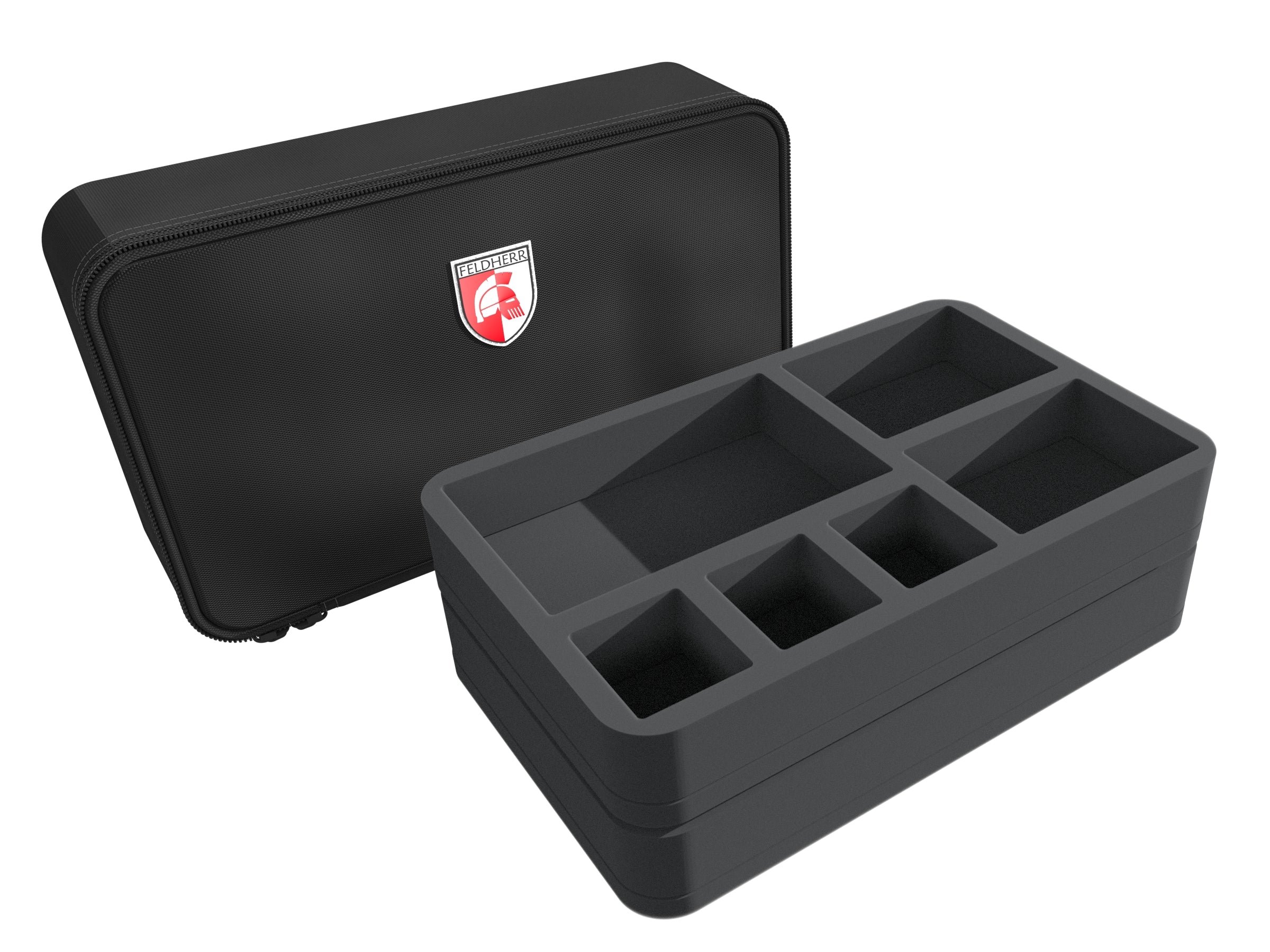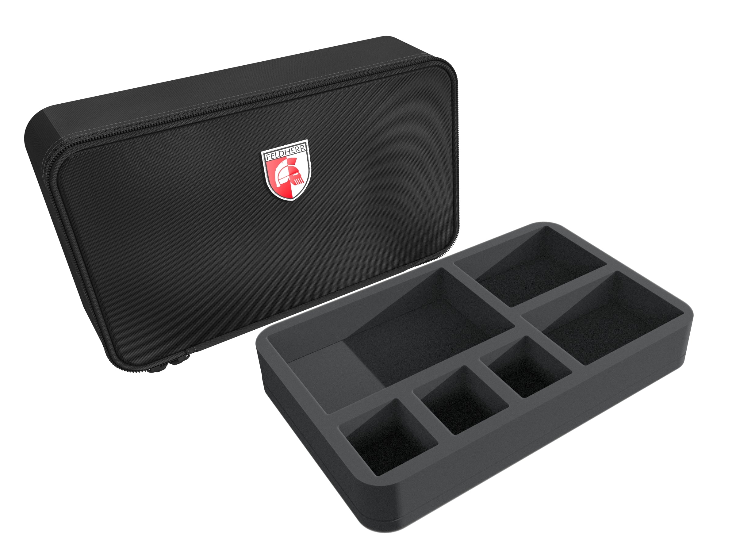 So that all your game components from the "Tiny Epic: Defenders“ box and the "Tiny Epic: Defenders – The Dark Wars" expansion are orderly stored and easily transported, Feldherr provides you with this MINI bag including matching foam trays.