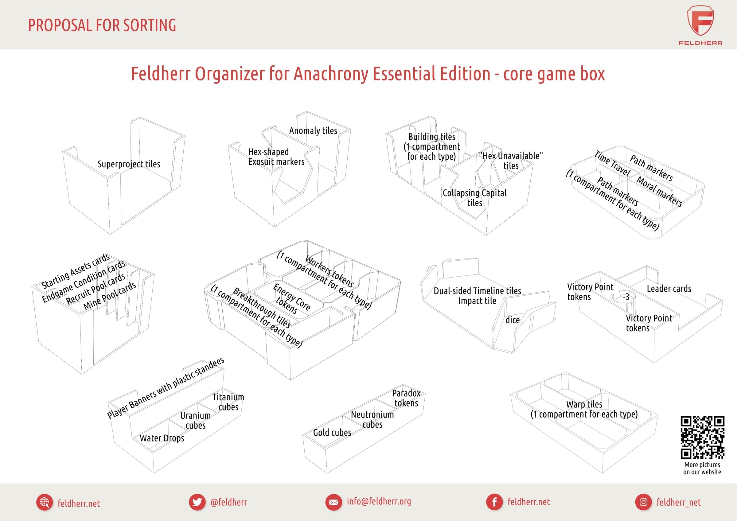 We support you with this convenient Feldherr Organizer for the Anachrony: Essential Edition. With this, you ensure orderly conditions in your core game box, and the orchestration of your workers and raw materials works efficiently.