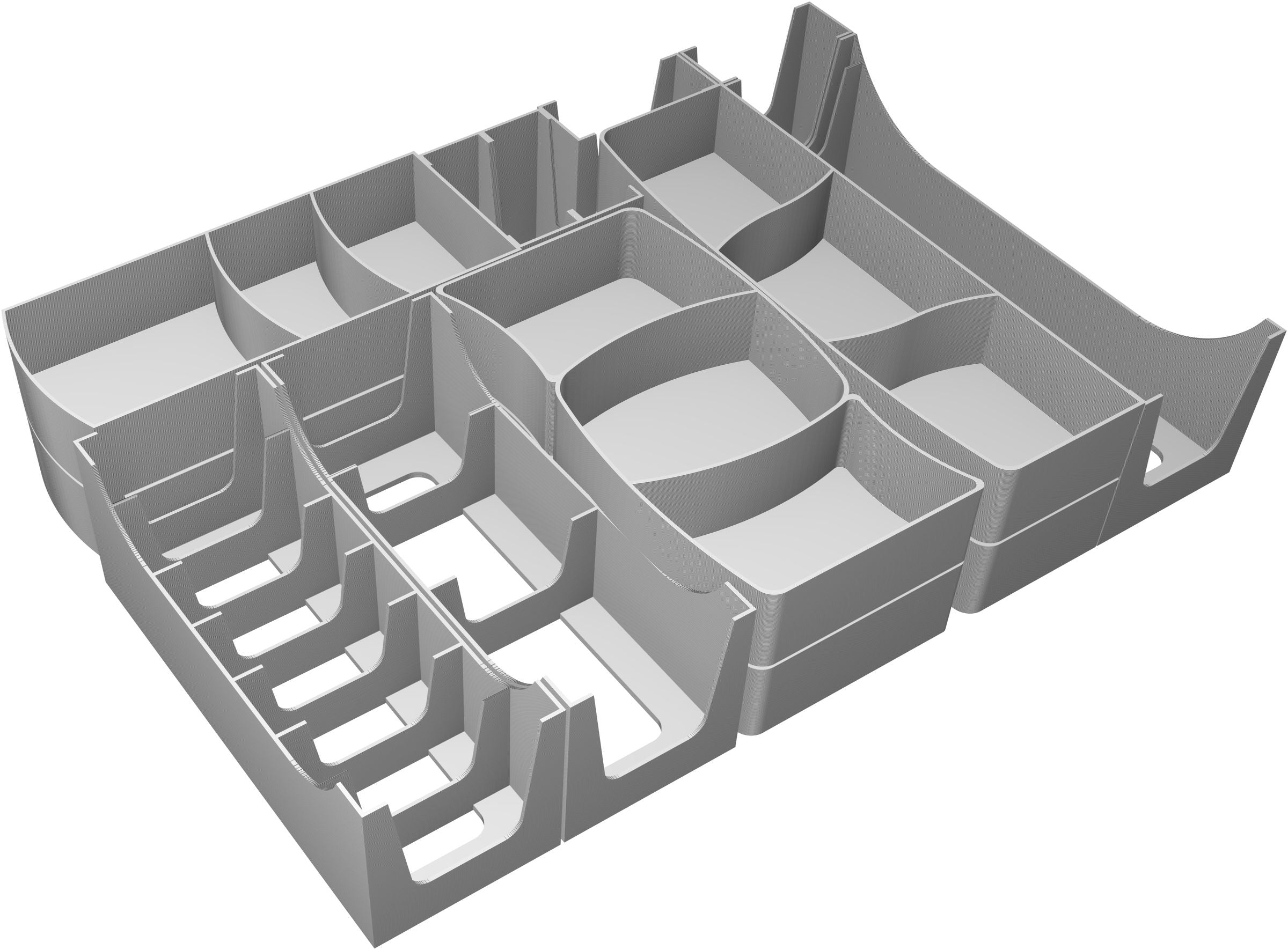 • 10 individually removable boxes made of sturdy plastic offer space for all contents from the core game plus 11 expansions.