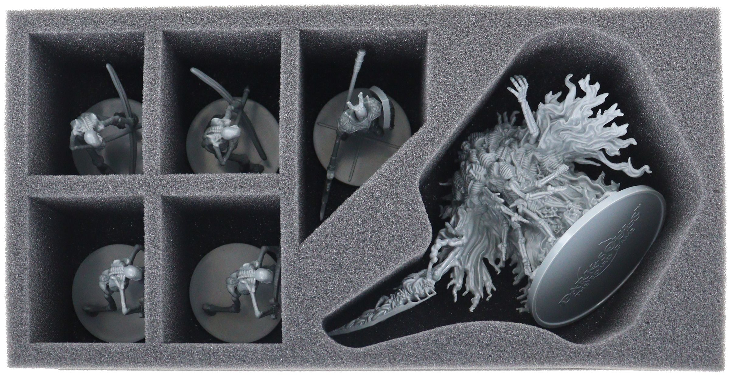 In the dark depths of the catacombs, a secret path leads you into the darkness. There, in the lightless Tomb of Giants, awaits the Gravelord, Nito. To ensure your game character doesn’t crumble into pieces and you can effortlessly find your way among miniatures and tokens, we support you with this Feldherr foam set with Organizer.