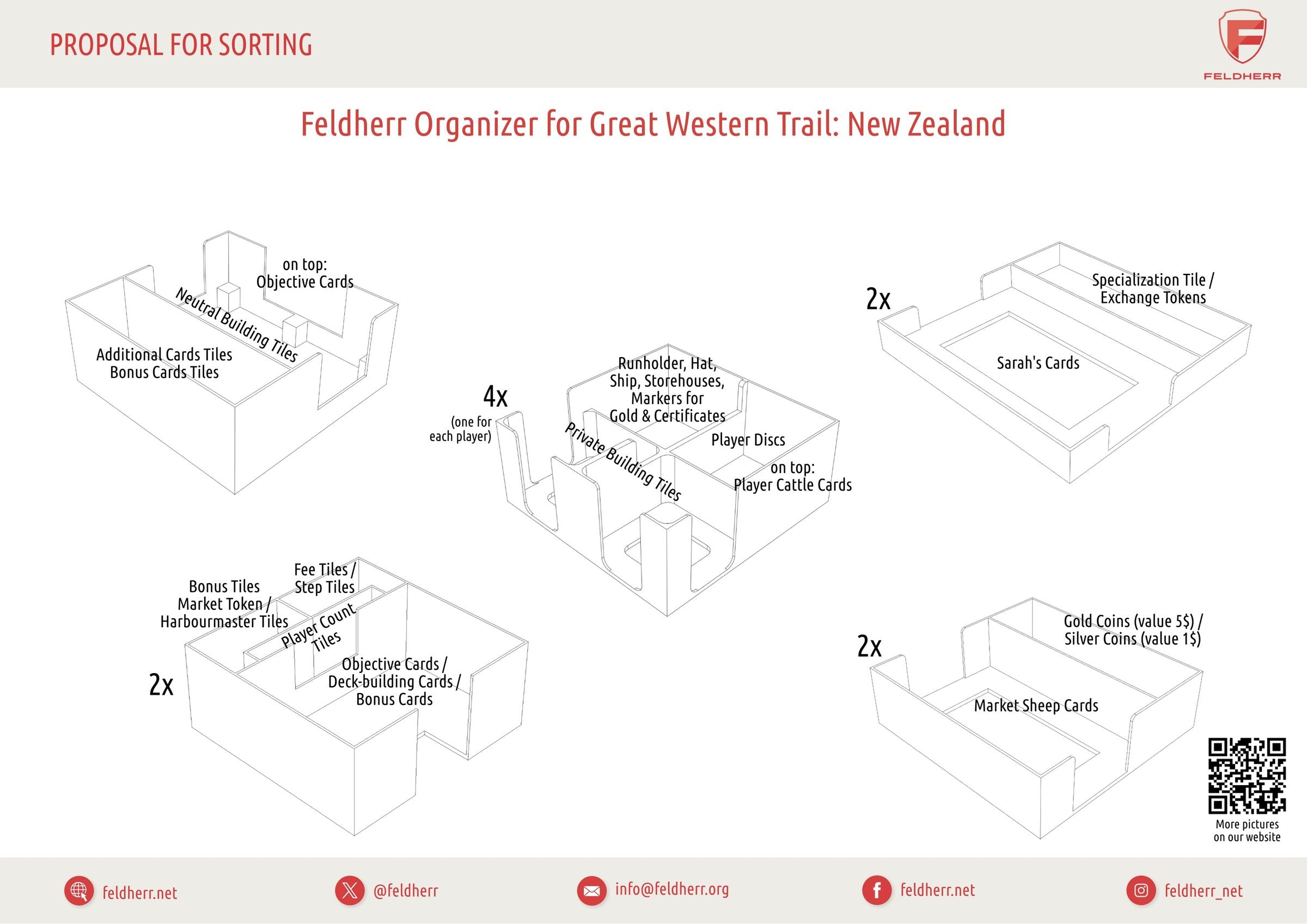 - This Organizer offers space for all game materials from Great Western Trail: New Zealand.