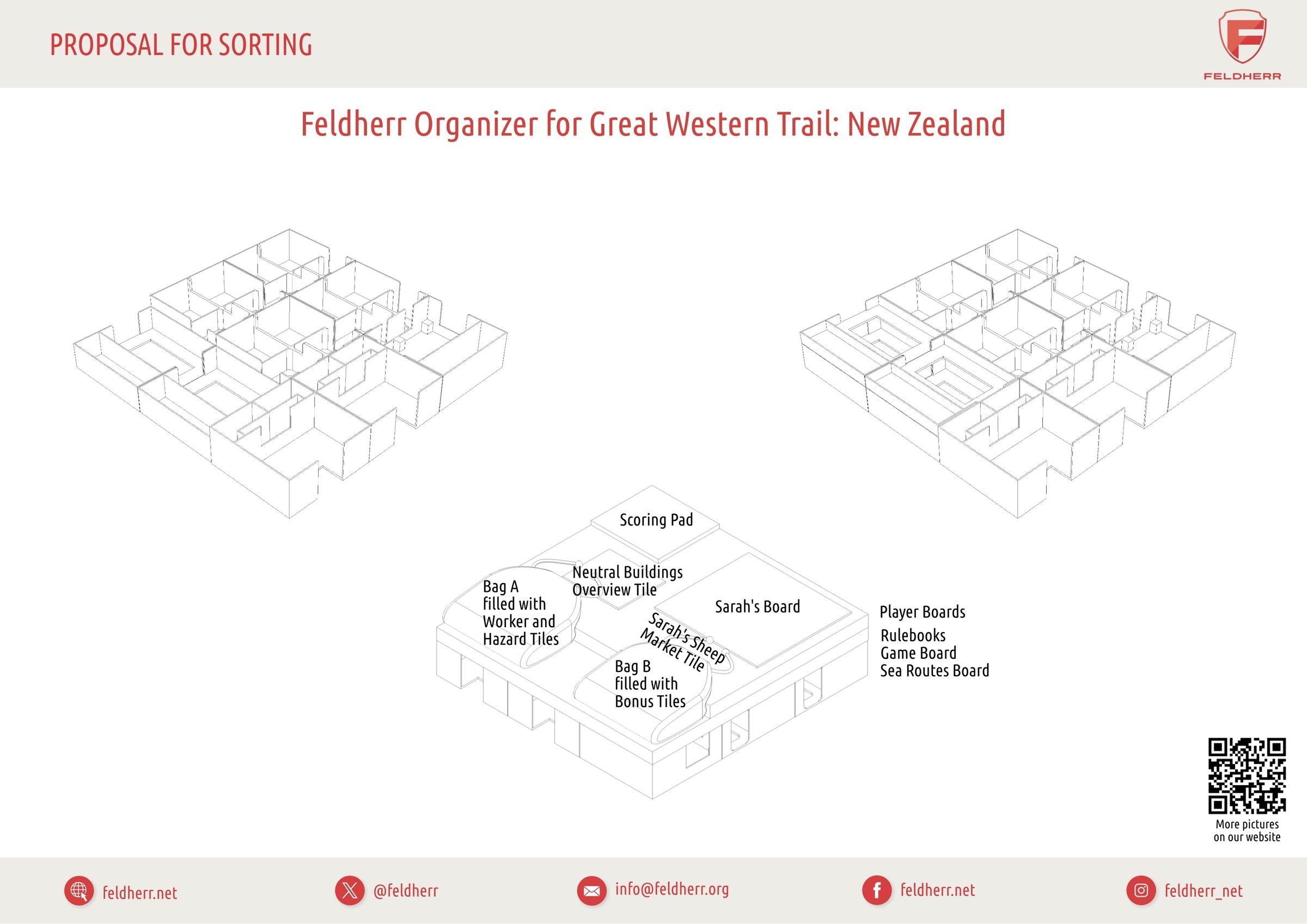 With this efficient Feldherr Organizer set - thoughtfully designed and tailor-made for the stand-alone GWT expansion New Zealand - you create order in the game box and ensure a better overview on the gaming table, thus laying the foundations for a relaxed game.