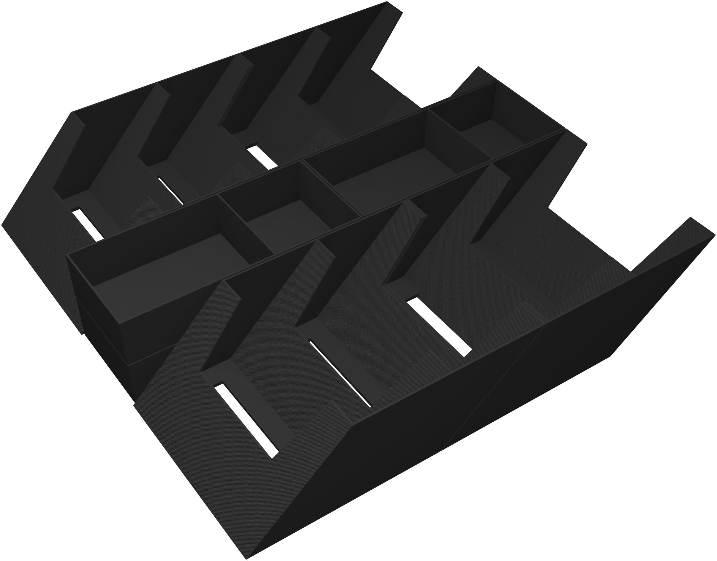 The token holders are placed in the middle of the box, between the card holders. You can use a total of eight compartments to sort your tokens.