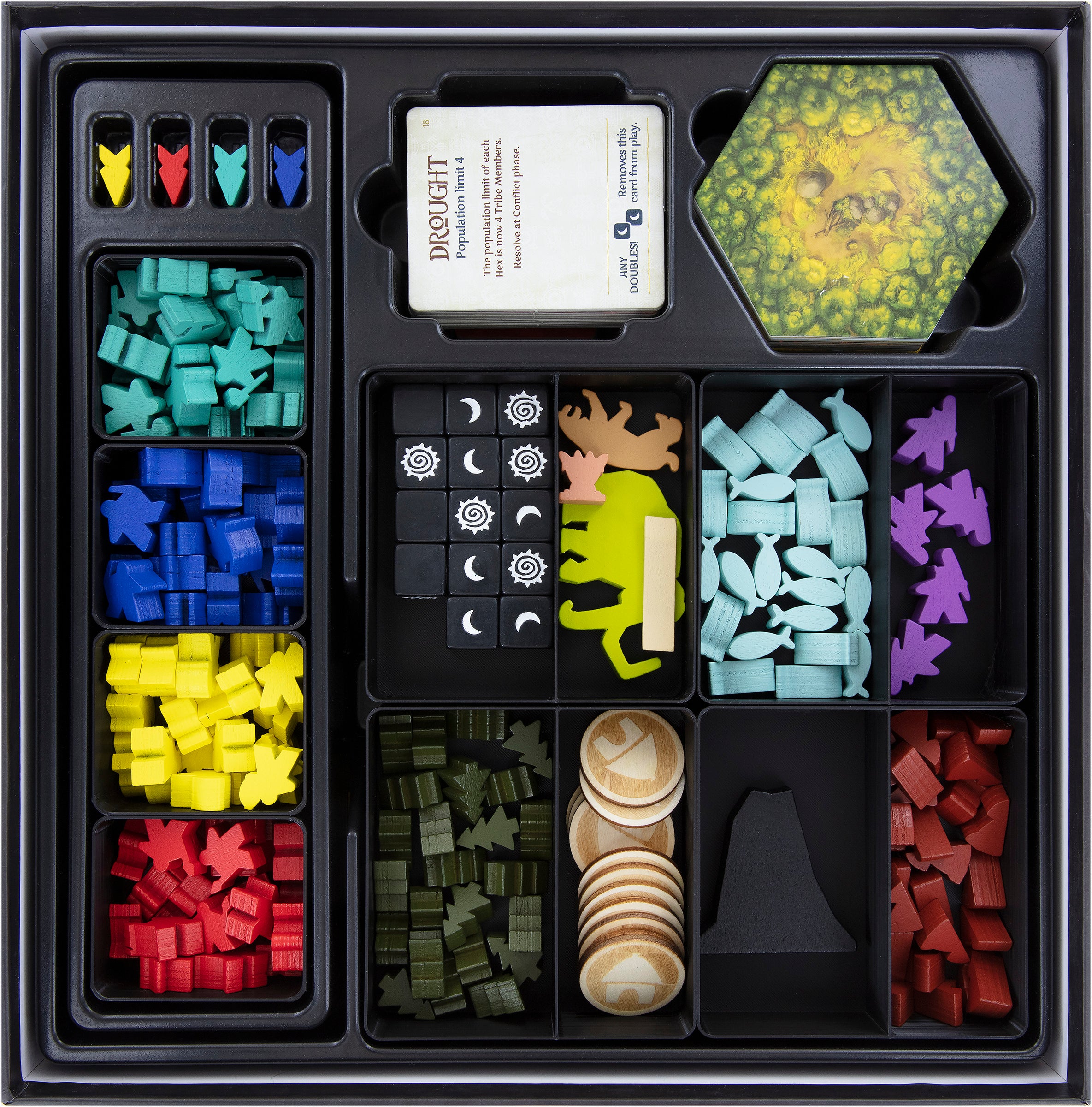 • The Organizer provides room for all the contents of the “Rise of Tribes” core game and the Deluxe Upgrade Set.