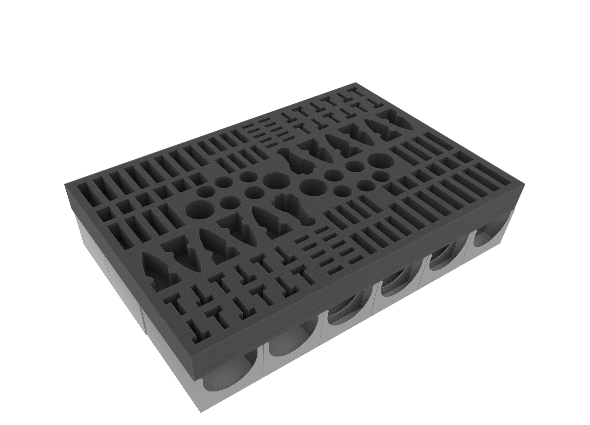 To protect your miniatures, the Set includes three Feldherr foam trays. Each insert features 122 custom-cut compartments with enough space to keep two factions on each tray.