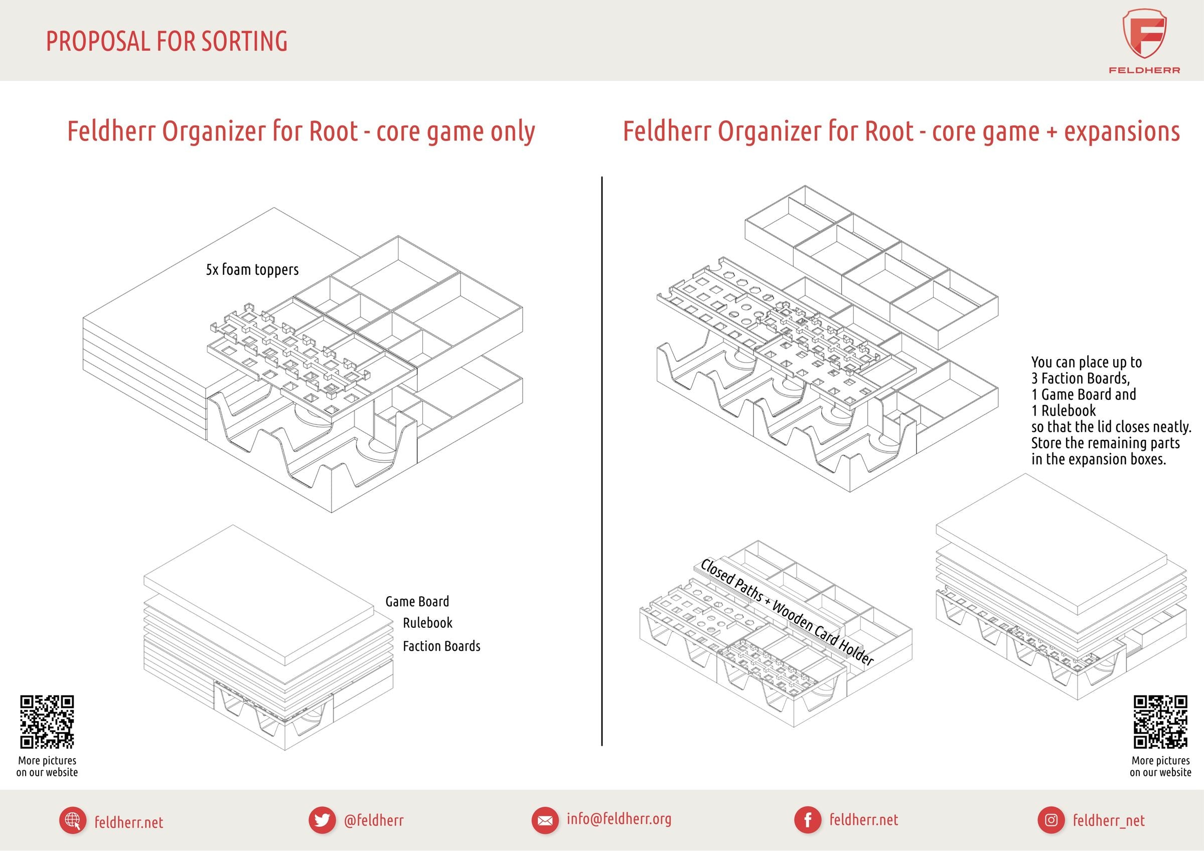 • Feldherr Organizer (ORG137) + Upgrade Set (ORG138) provide space for the entire game material from the "Root" core game and the expansions.
