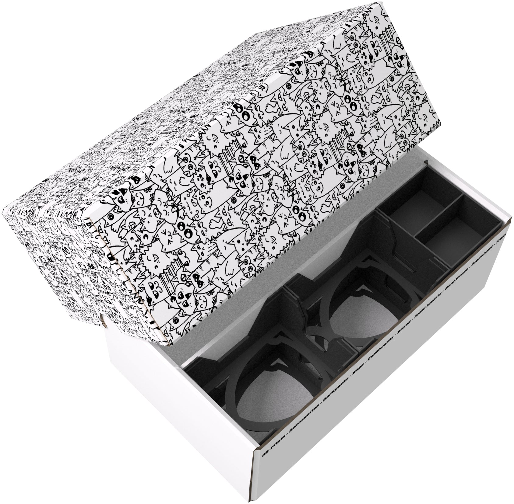 A partition in the middle of the box divides it into two equal-sized compartments. This allows the cards to be lined up neatly without mixing during transport.