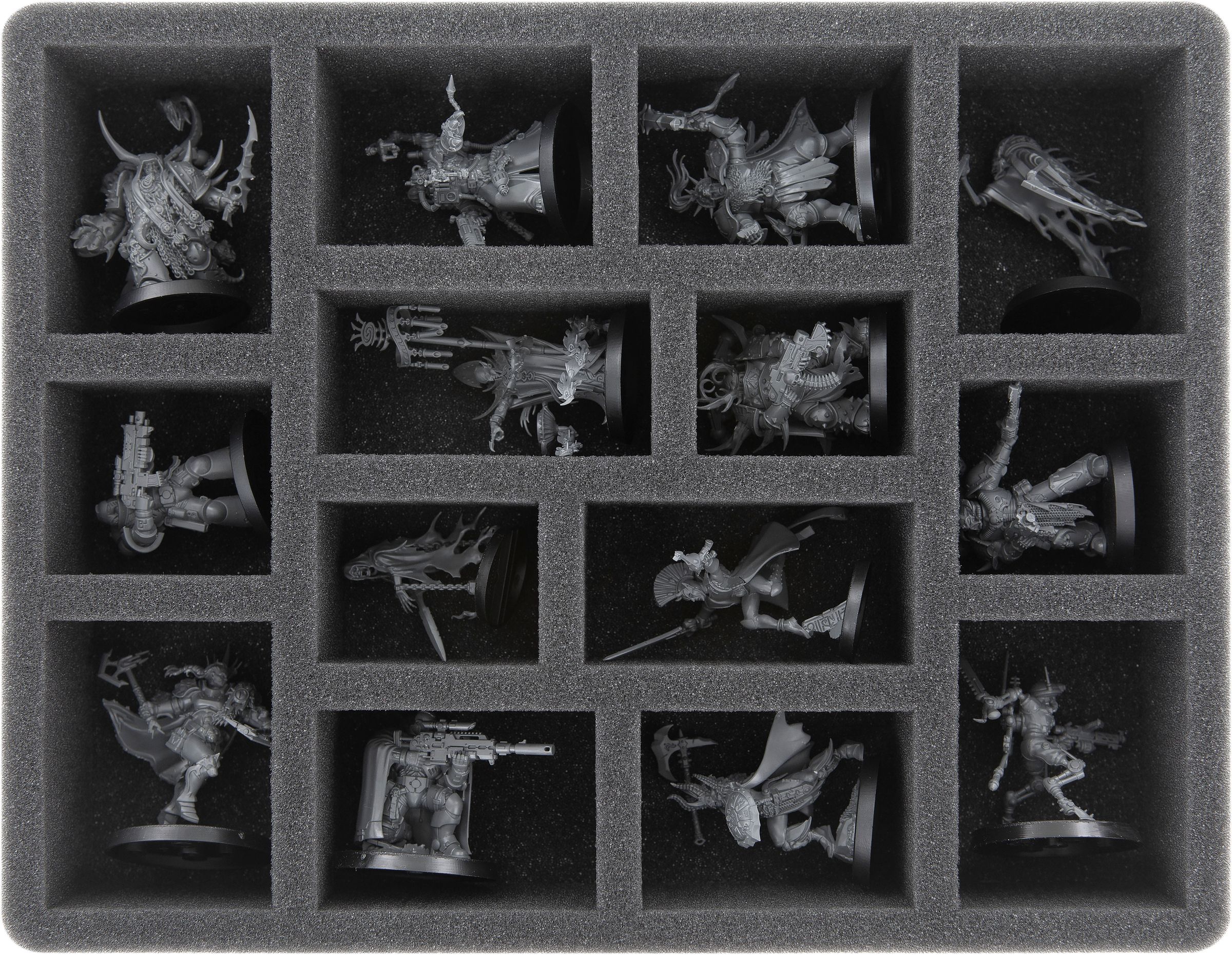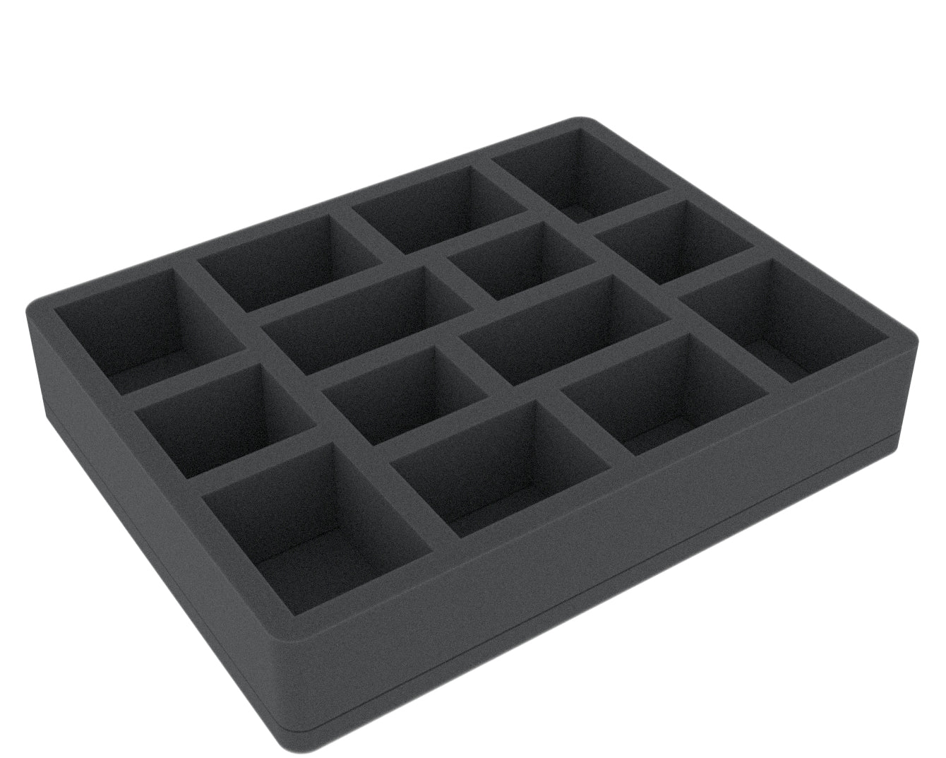 • 1 GWB-Size foam tray with 14 compartments for bulky infantry miniatures on 40 mm base (CRMEMH050BO).
