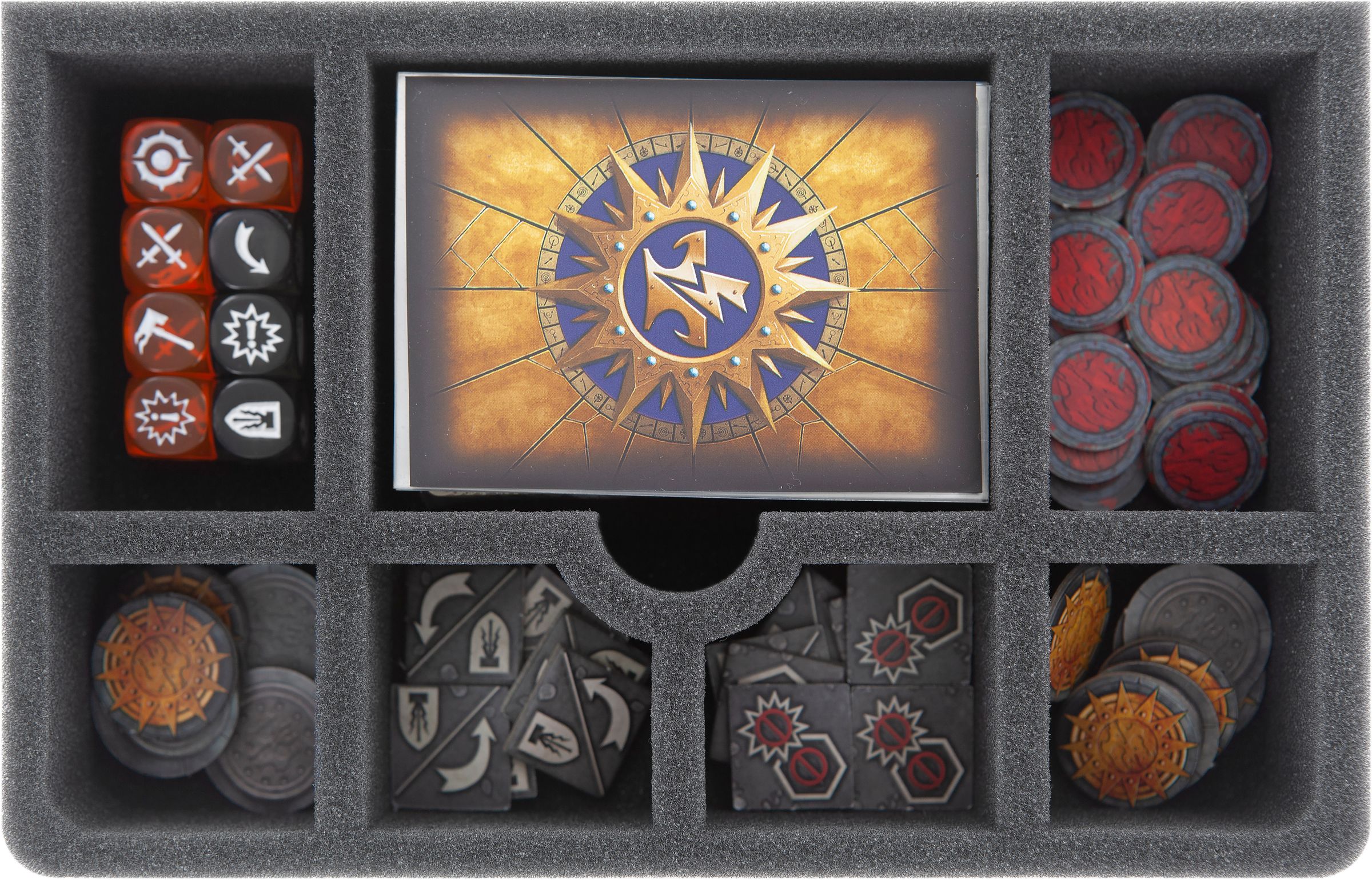 • 1 GWA-Size foam tray with 7 compartments for game material like cards, token and dice (CQMEID050BO).