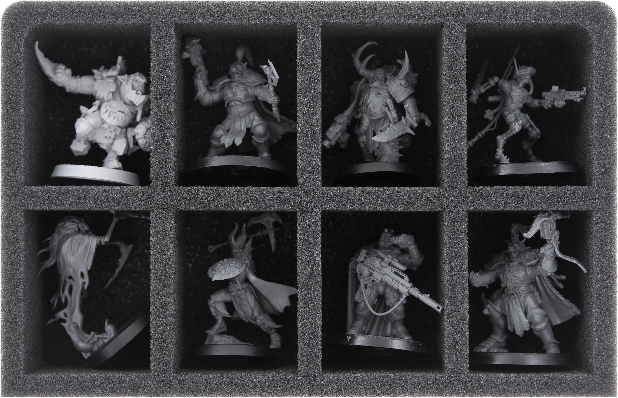 • 1 GWA-Size foam tray with 8 compartments for infantry miniatures on 40 mm base (CQMEIE050BO).