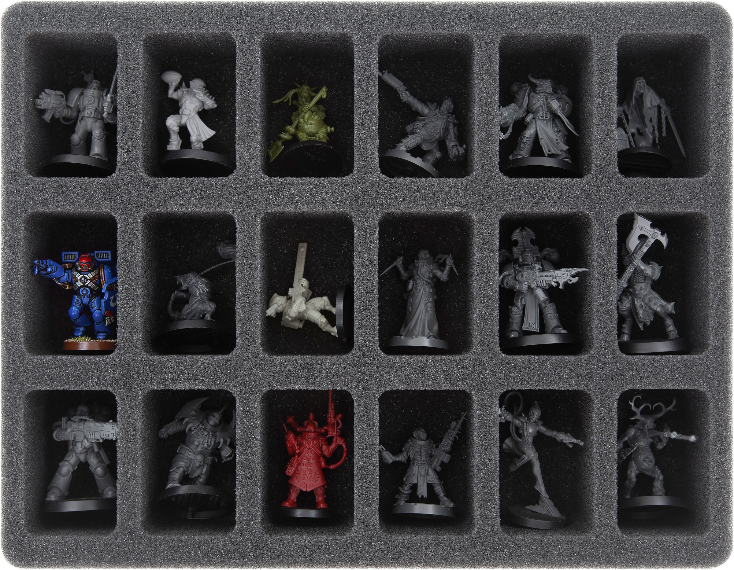 • 8 GWB-Size foam trays each with 18 compartments for miniatures on 32 mm base (CRMEMG050BO).