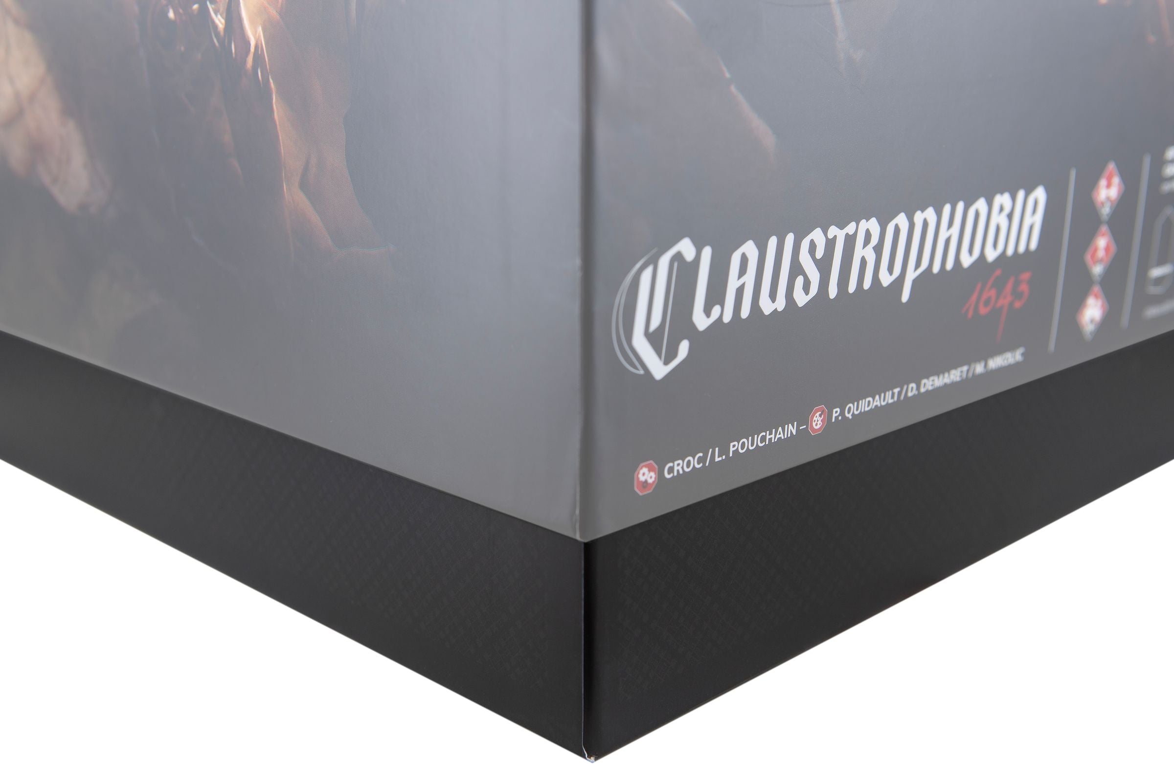 • The set fits exactly into the original „Claustrophobia 1643“ game box by Monolith Games