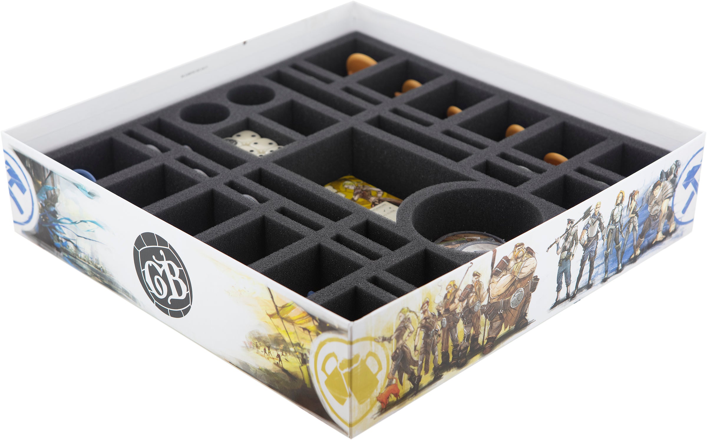 Thanks to the precisely fitting compartments, the elaborately painted miniatures and accessories remain in place even during transport and do not tumble. The soft foam protects the figures, cards, tokens and other sensitive parts against damage, as well as the painted miniatures from abrasion and scratches.