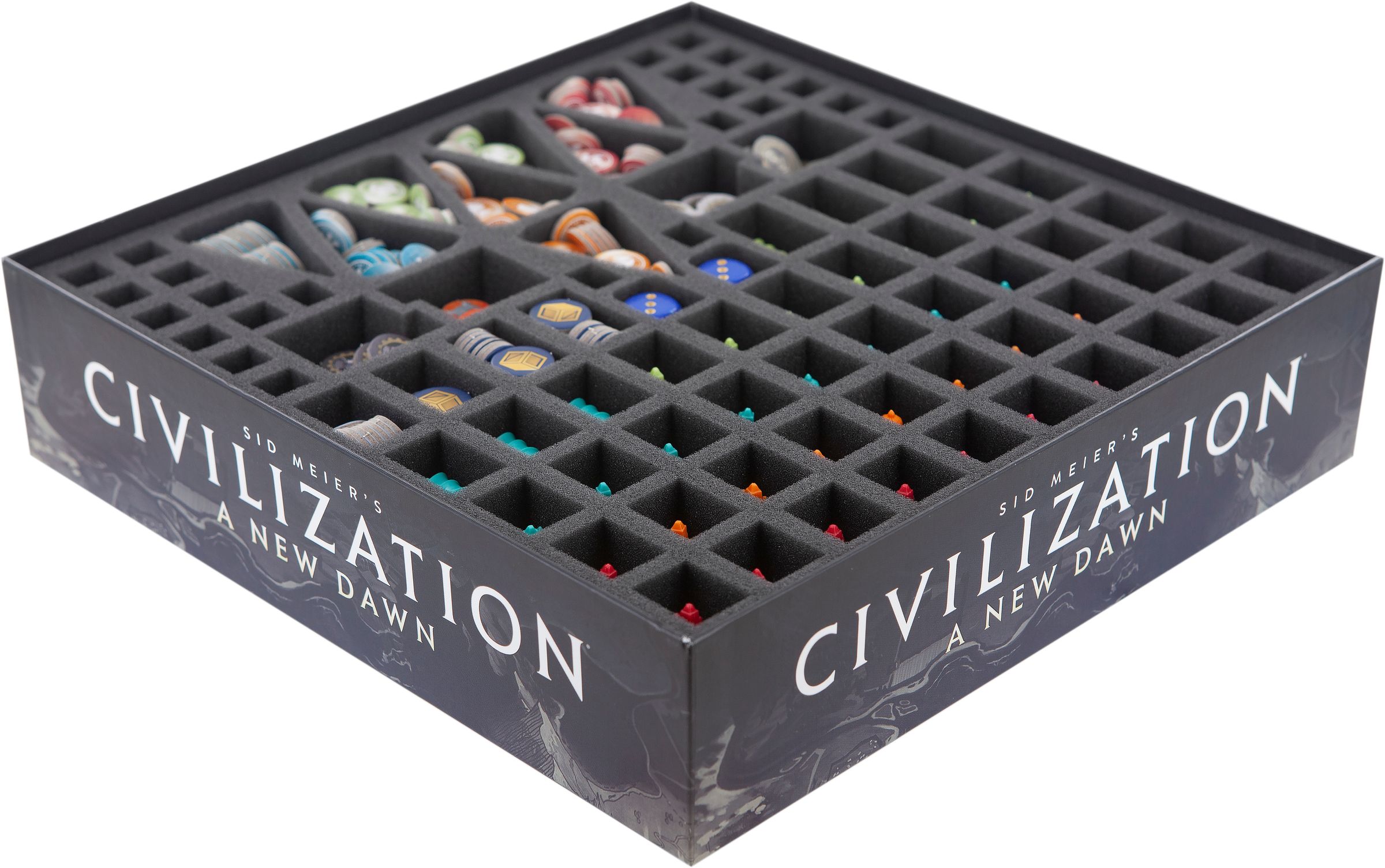 • The set fits exactly into the original board game box for "Sid Meier's Civilization: A New Dawn" by FFG (CIV01).
