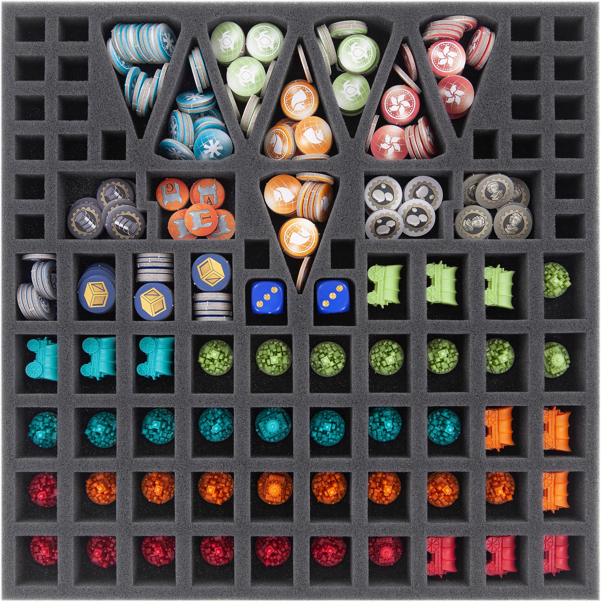 To prevent your civilization from going under in the chaos between tokens and tiles before it has even risen, we have the suitable Feldherr foam set for the proper storage of all the game material.