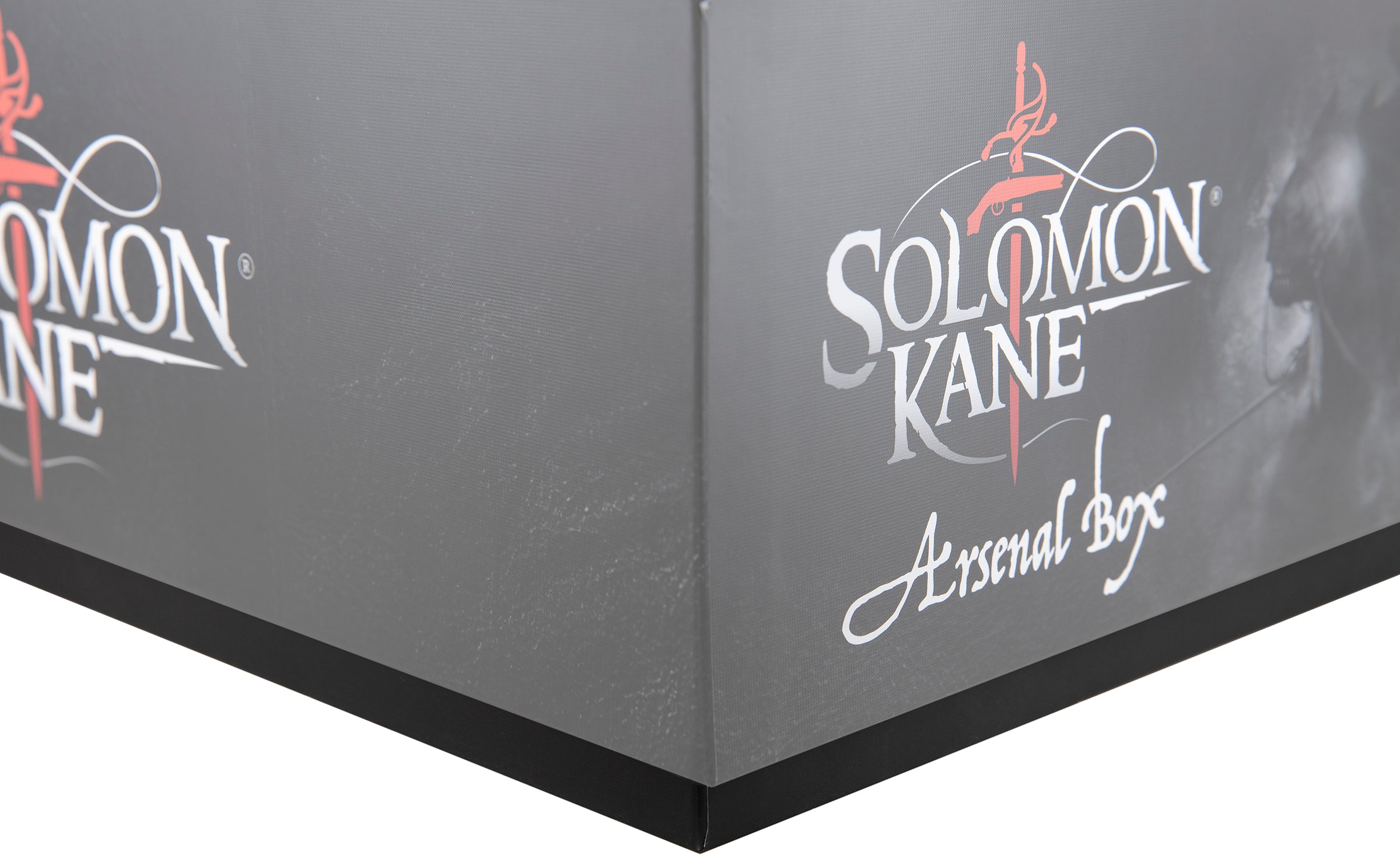 - The set fits into the board game box of the "Solomon Kane" core game or into the Arsenal box.