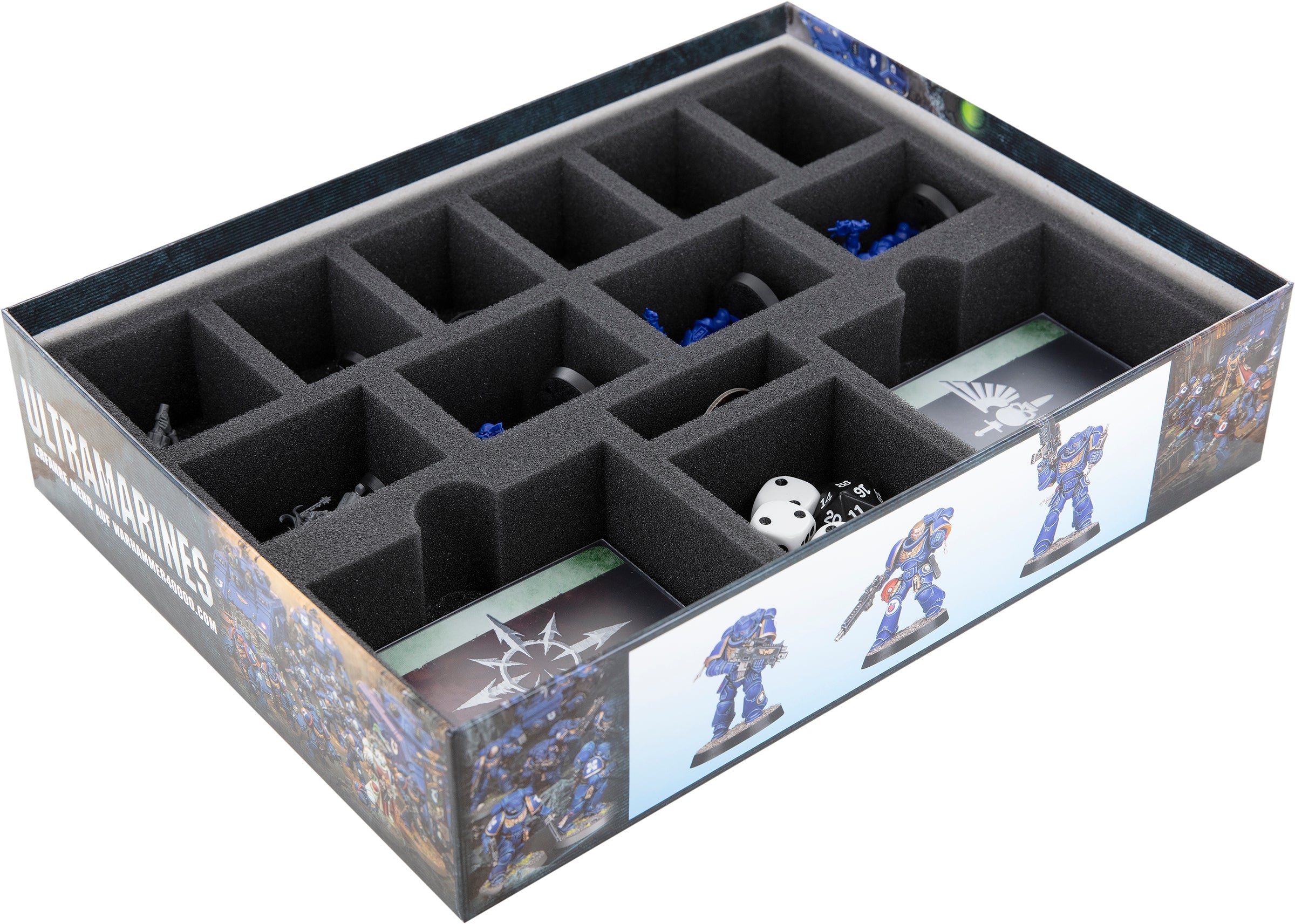 Each miniature gets its own matching compartment. The custom-fit cut ensures that the miniatures have a tight fit, stay in place, and don't bump into each other, even when transported through a burning hive world. The soft foam reliably protects your figures from snapping off details and the colors of your painted models from scratches and chipping paint.