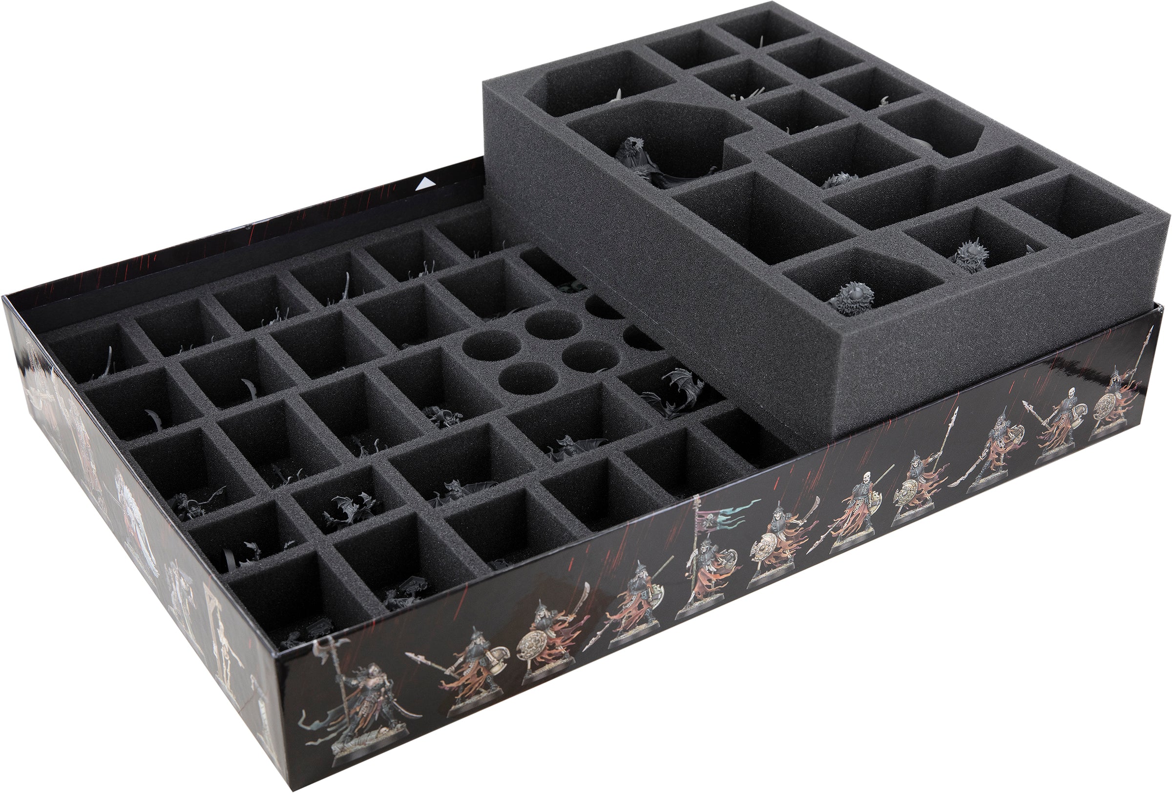 Whether Vargskyr, Direbat or Gravestones - on the two Feldherr foam inserts, one specific compartment is reserved for each miniature. From the fearsome Brutogg Corpse-Eater to the Deadwalker Zombies to the Blood Rats, all hero, hostile and object models get an individually tailored compartment.