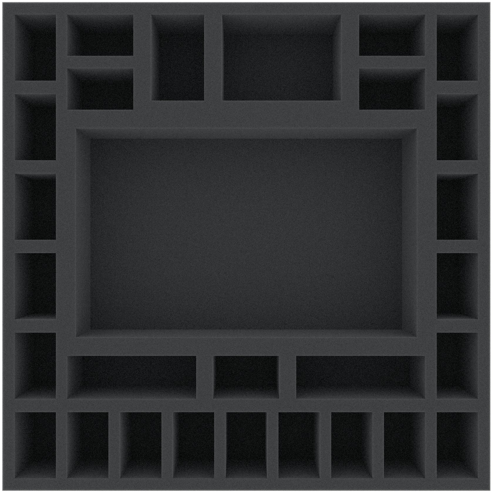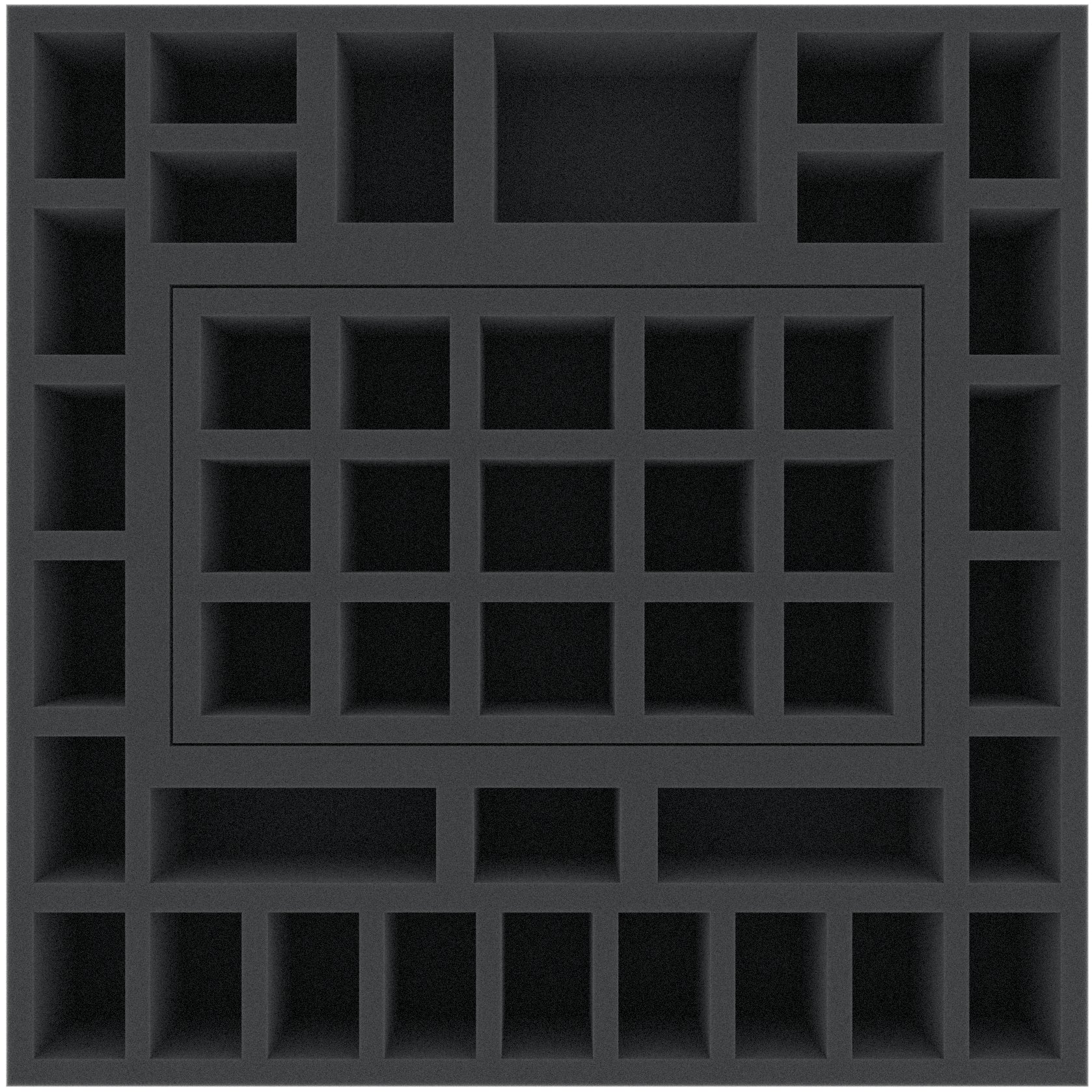 • The Feldherr foam tray has the dimensions: 295 mm x 295 mm x 55 mm total height (35 mm usable height + 10 mm foam base)
