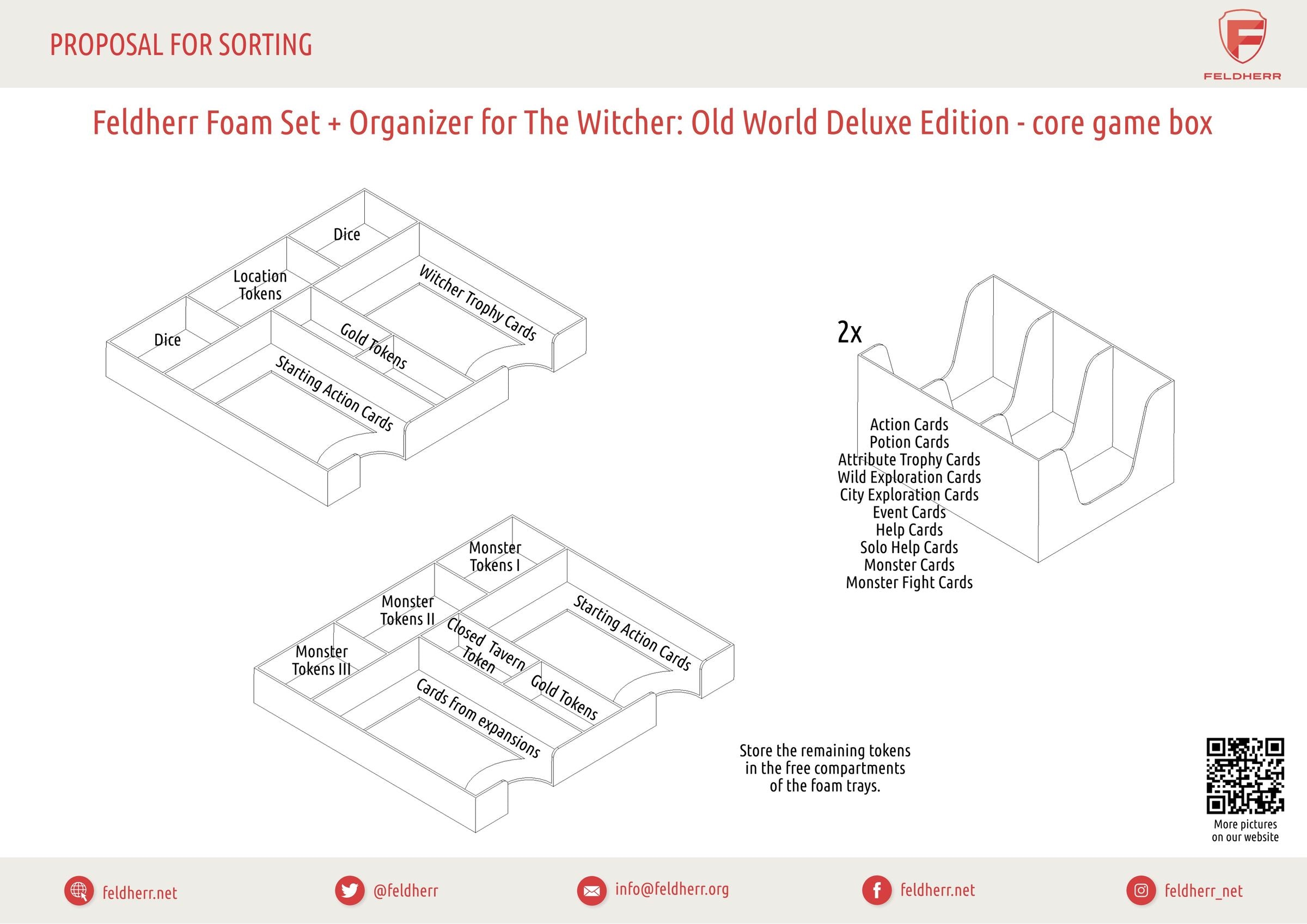 To ensure you don't stumble over scattered game components or broken miniature pieces while hunting, we support you with this Feldherr Set for your Deluxe Edition board game box. The custom Feldherr foam trays and the Organizer keep the game box organized. Easily find the right potions, and your miniatures remain securely protected.