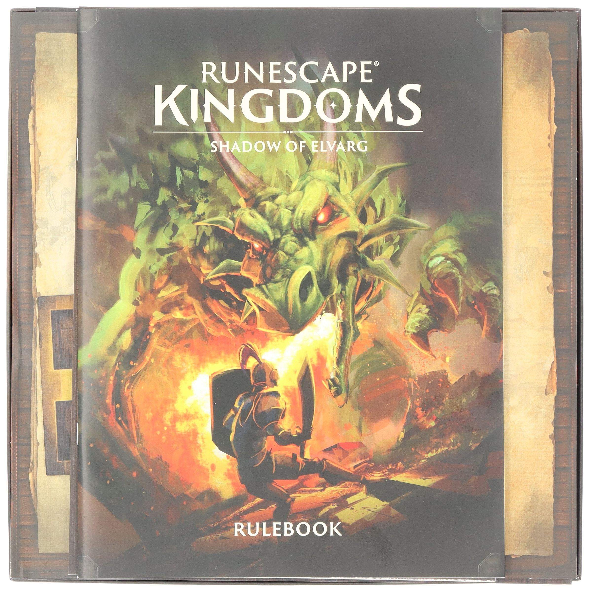 - The set fits precisely into the original core game box of Runescape Kingdoms: Shadow of Elvarg (Set dimensions: 285 x 285 x 95 mm).