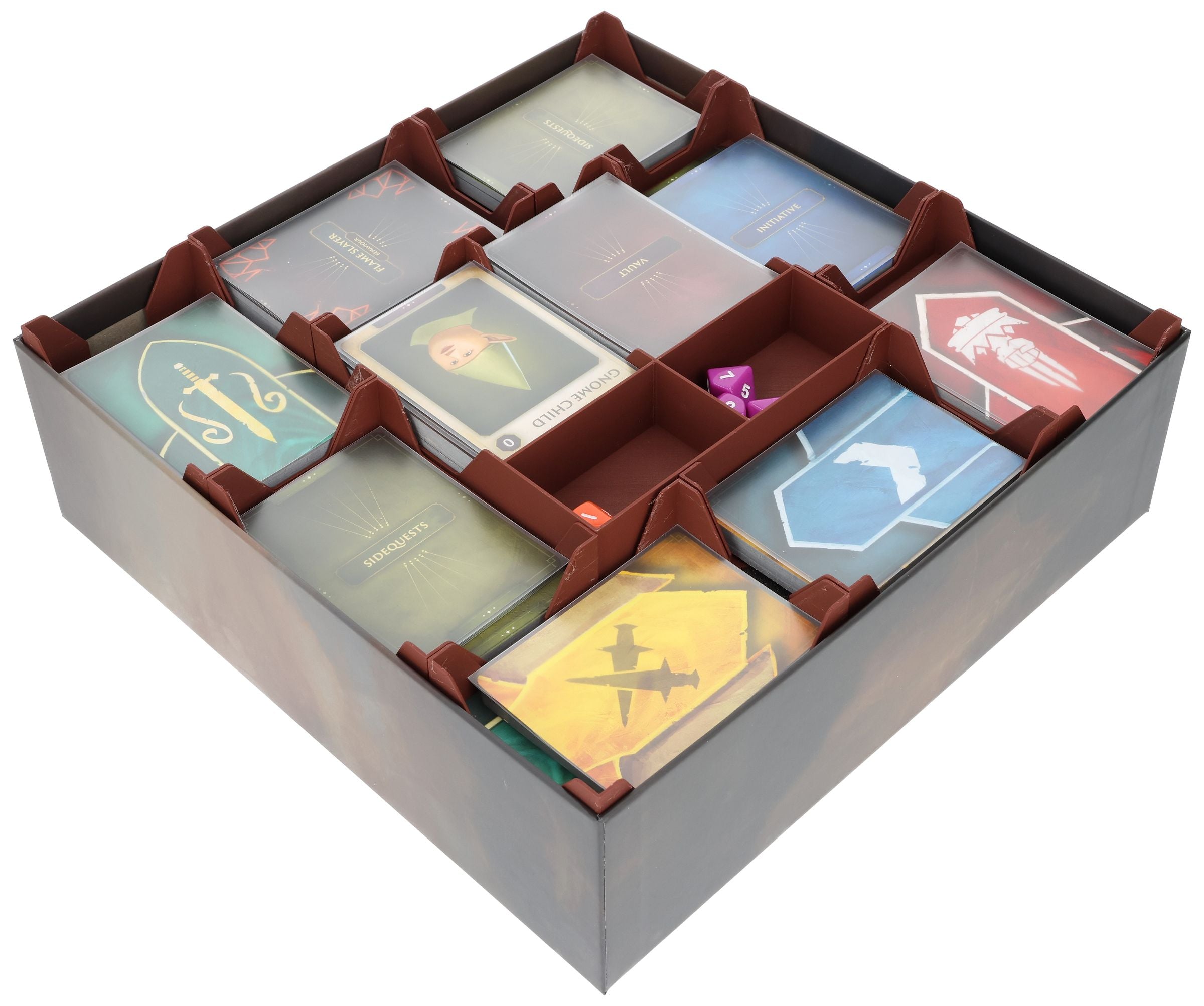- The individually removable plastic inserts bring your cards and dice from the box directly to the table, speeding up game setup and giving you more time to play.