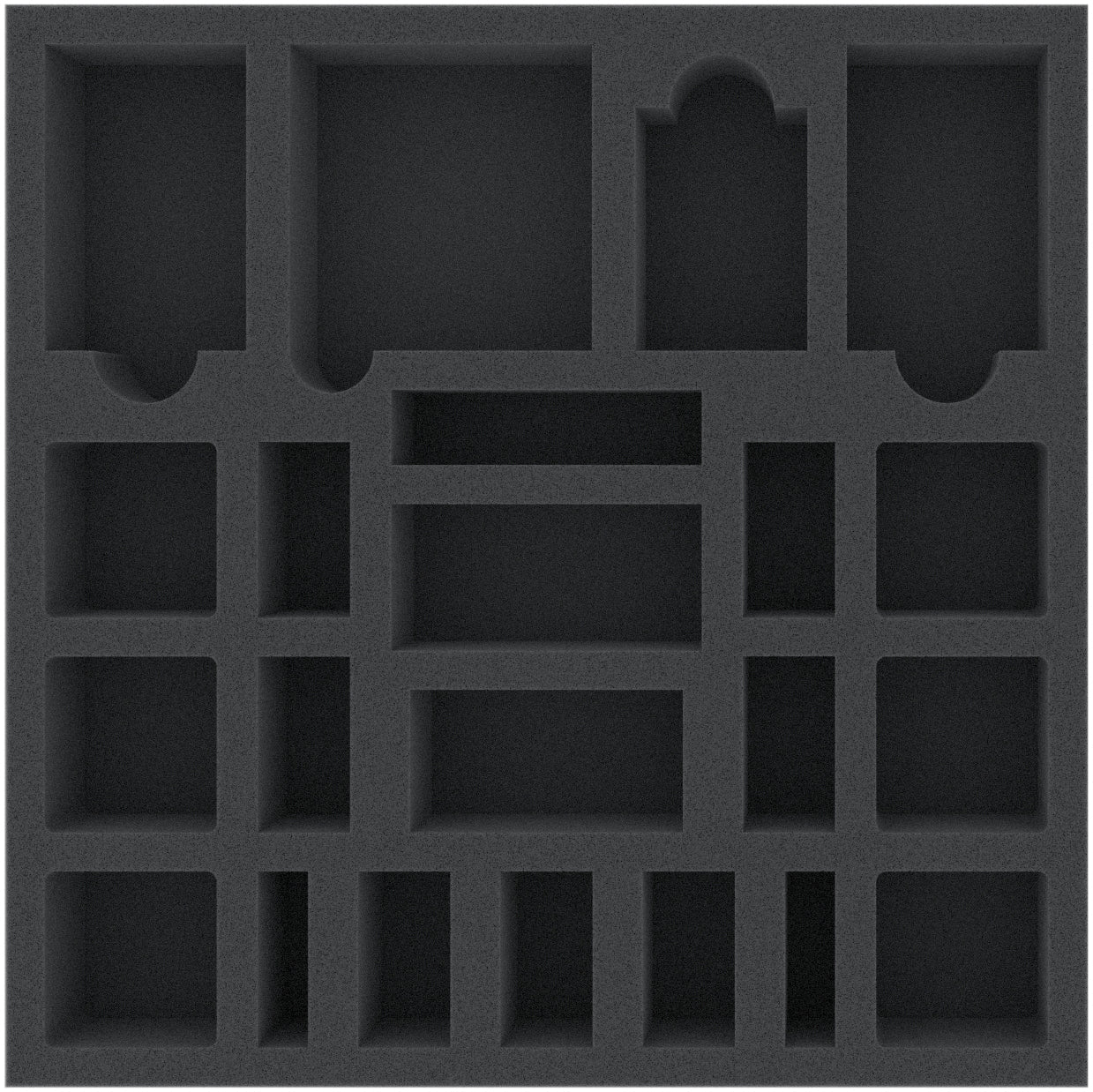 The 40 mm high Feldherr foam tray provides 22 compartments for your miniatures and game material. Thanks to the precise cut, your models have a tight fit and can not slip. The soft, fine-pored foam protects delicate parts from breaking off and the colors of your painted models from scratches and abrasion.