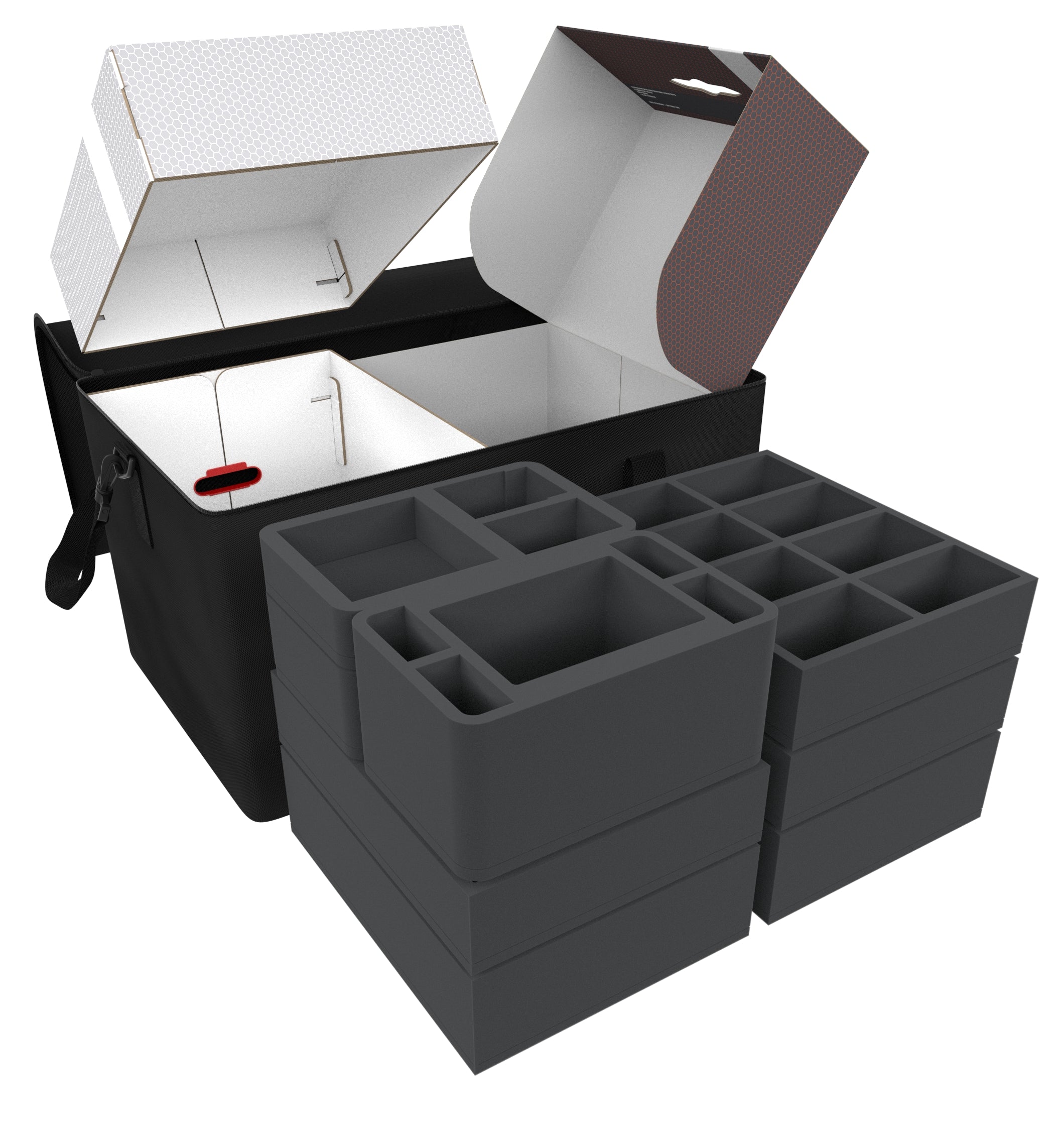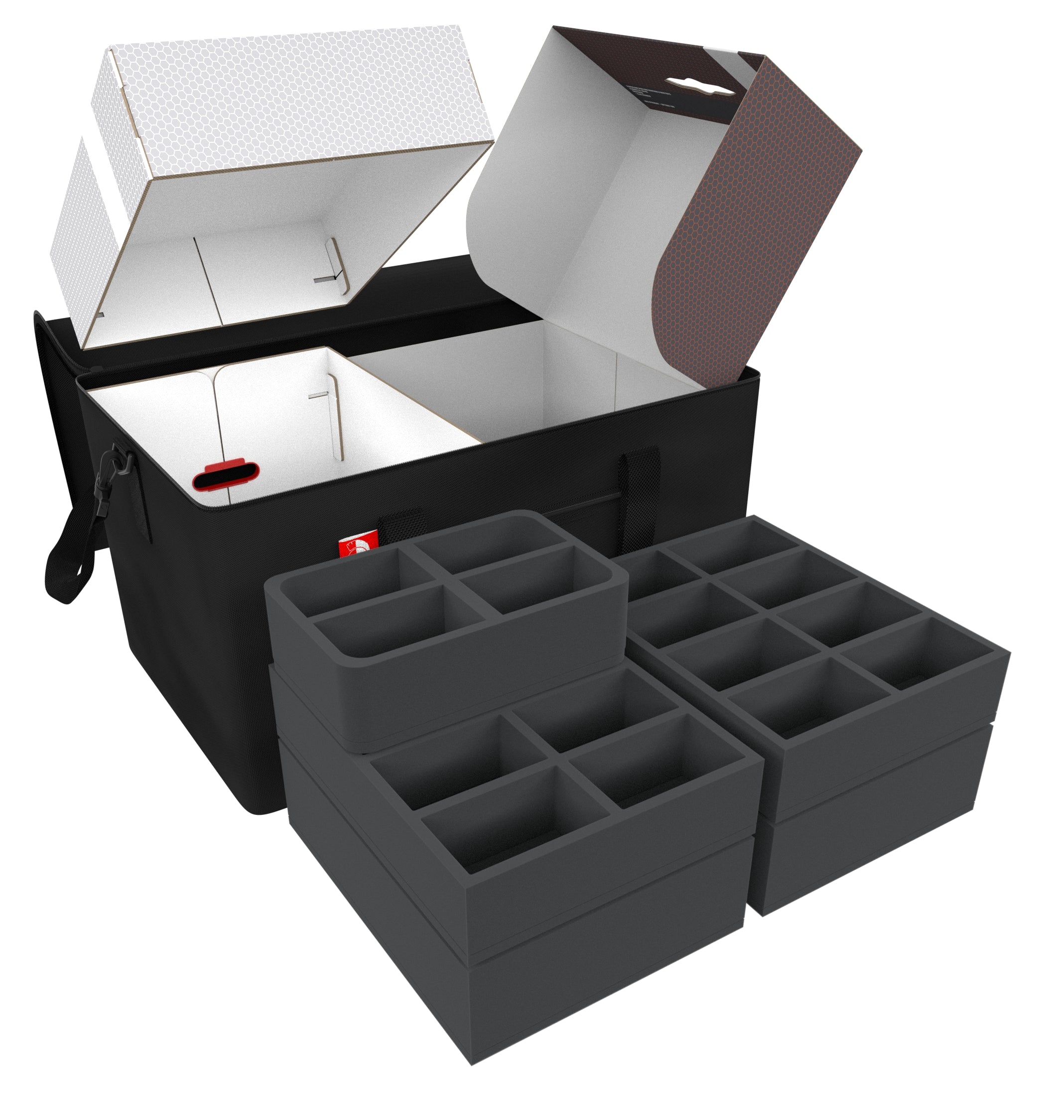 To ensure that nothing happens to your armies on the way to the next mission, here you get two lightweight and spacious Feldherr Storage Boxes FSLB310 and FSLB250, bursting with custom foam inside the convenient Transporter Bag. This will keep up all contact from the core game plus the two expansions Imperial Lords & Chaos Warband well protected and you'll get them transported with ease.