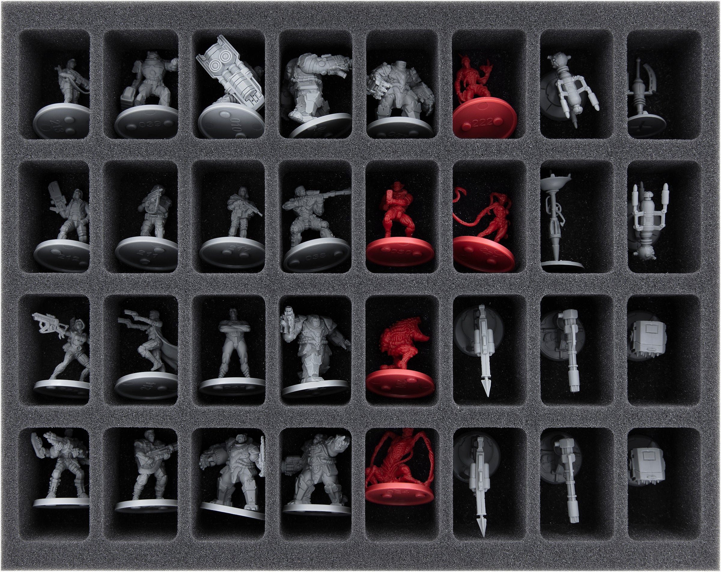 Your figures always stay firmly in place, do not slip around even during transport, and are therefore optimally protected against damage. The soft, fine-pored foam reliably protects your elaborately painted miniatures from scratches and color abrasion.