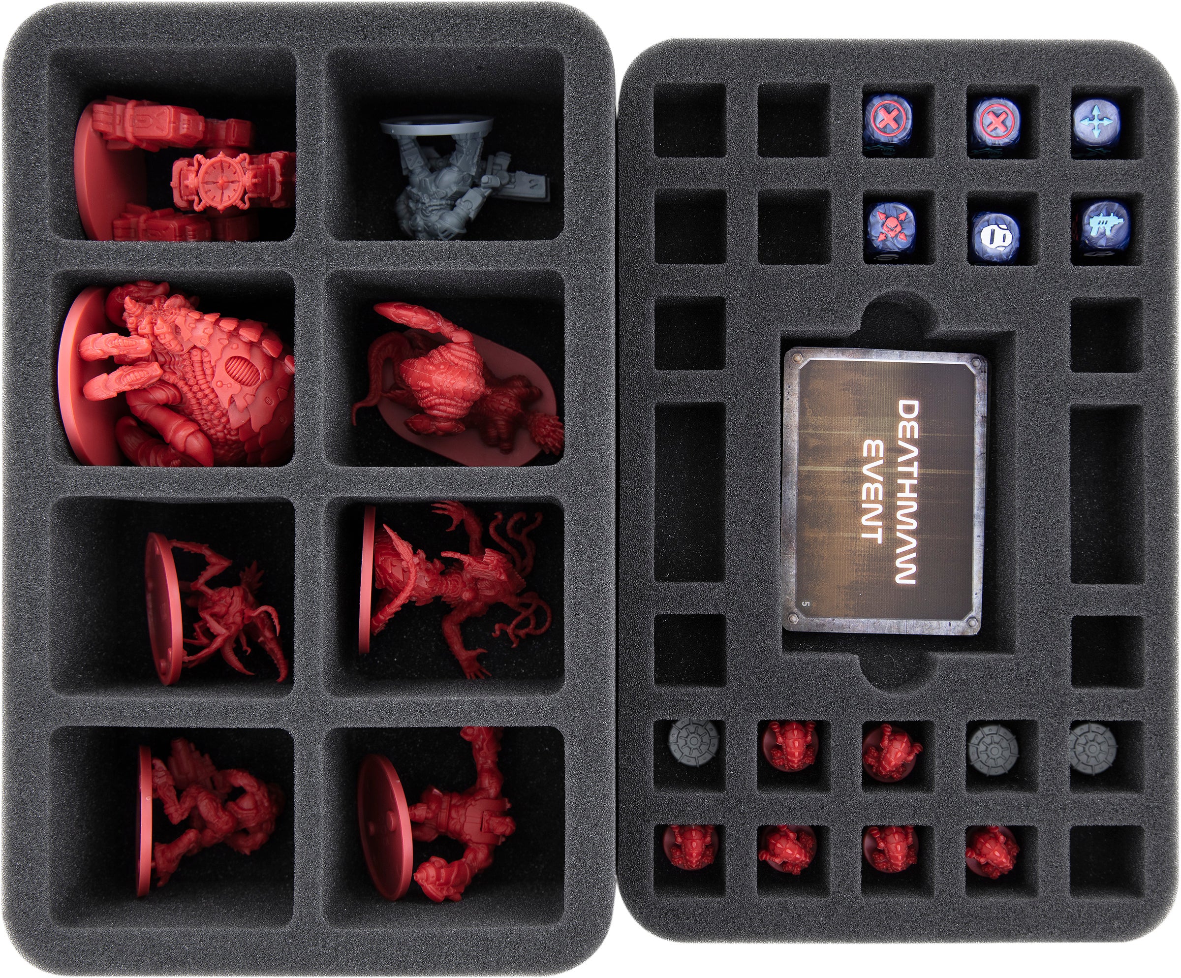 Glorious heroes, alien scum bags, or gigantic boss monster, like the colossal Deathmaw. Each model has its own, perfectly fitting compartment. In the case of Deathmaw nine.
