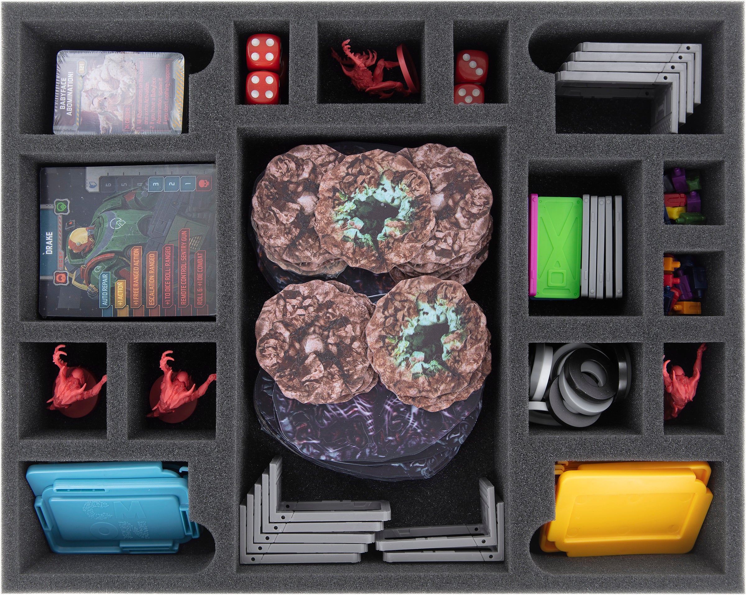 • 2 Full-Size foam trays for tiles, tokens, and cards (FS060I031BO)